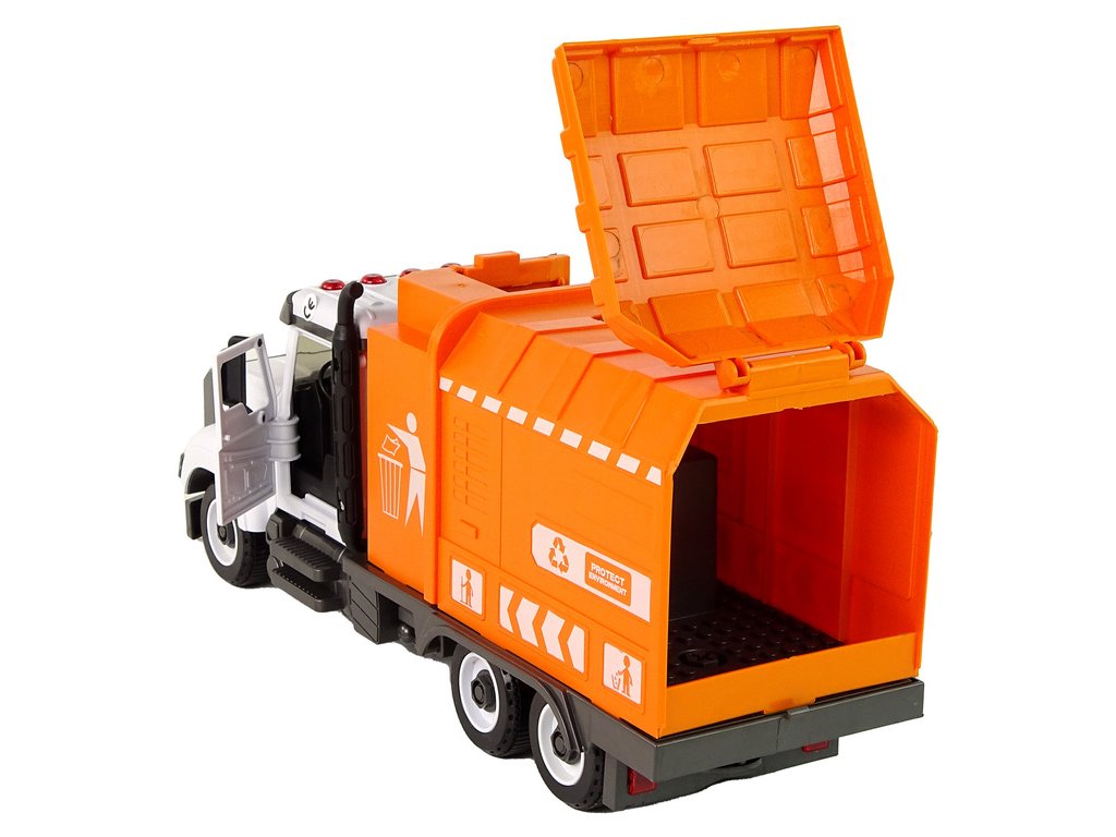 - Přineste do dětského pokoje kousek městského ruchu s naším oranžovým popelářským autem k montáži, které nejen zaujme svým realistickým vzhledem, ale i širokou škálou funkcí