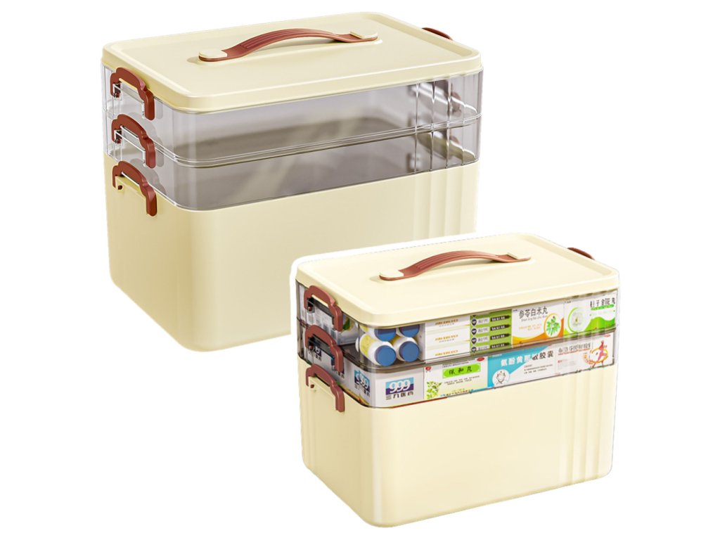 Organizér na léky Prostorný 3-Úrovňový Domácí Lékárnička