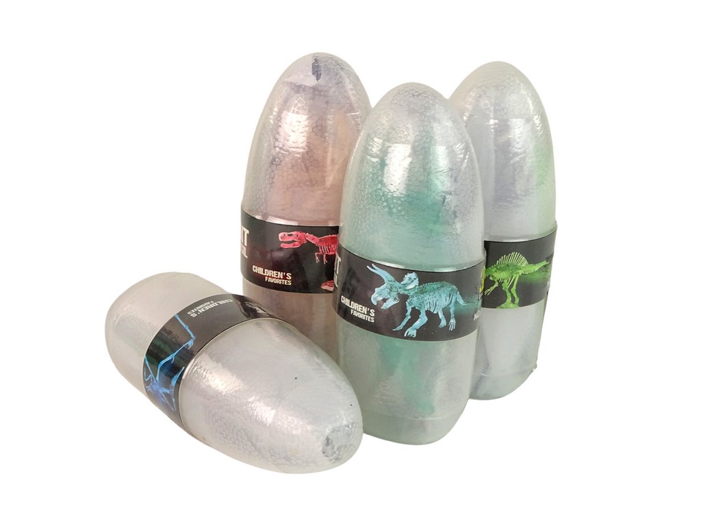 Uvnitř se nachází náhodný model krystalického skeletu dinosaura, jehož sestavení přináší další zábavu Jedná se o hračku, která procvičuje motorické dovednosti, pohybovou koordinaci a koncentraci