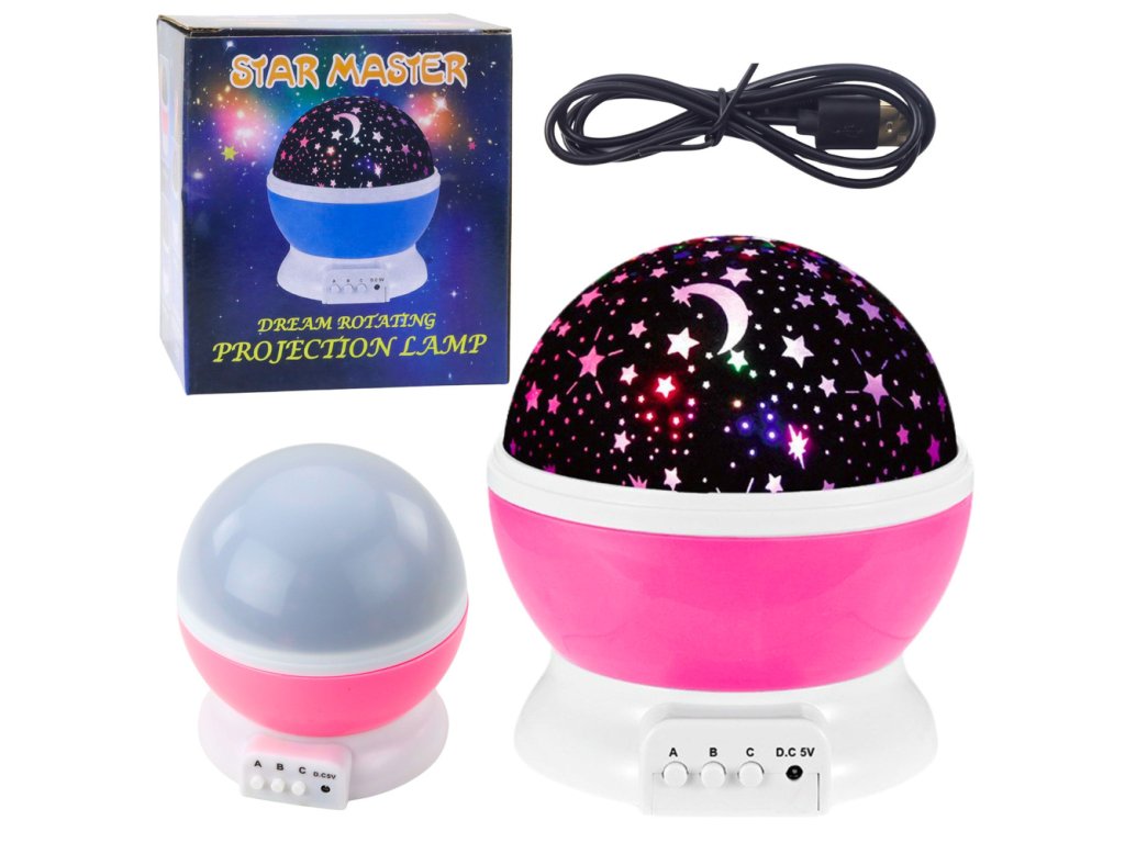 - Otočný hvězdný LED projektor 360° Noční lampička Růžová rozzáří každý dětský pokoj a vnese do něj kousek kouzelného večerního nebe