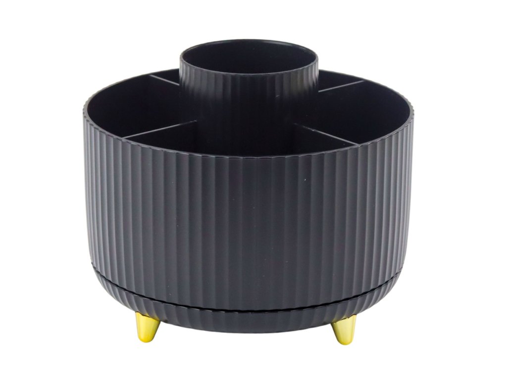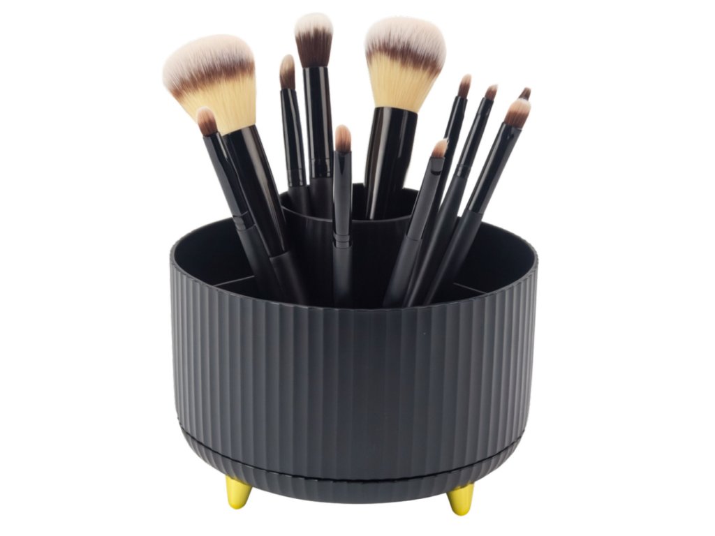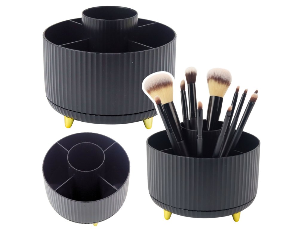 - Stylový černý otočný organizér na štětce a rtěnky je praktickým a funkčním řešením, které pomůže udržet pořádek v kosmetice a make-up příslušenství