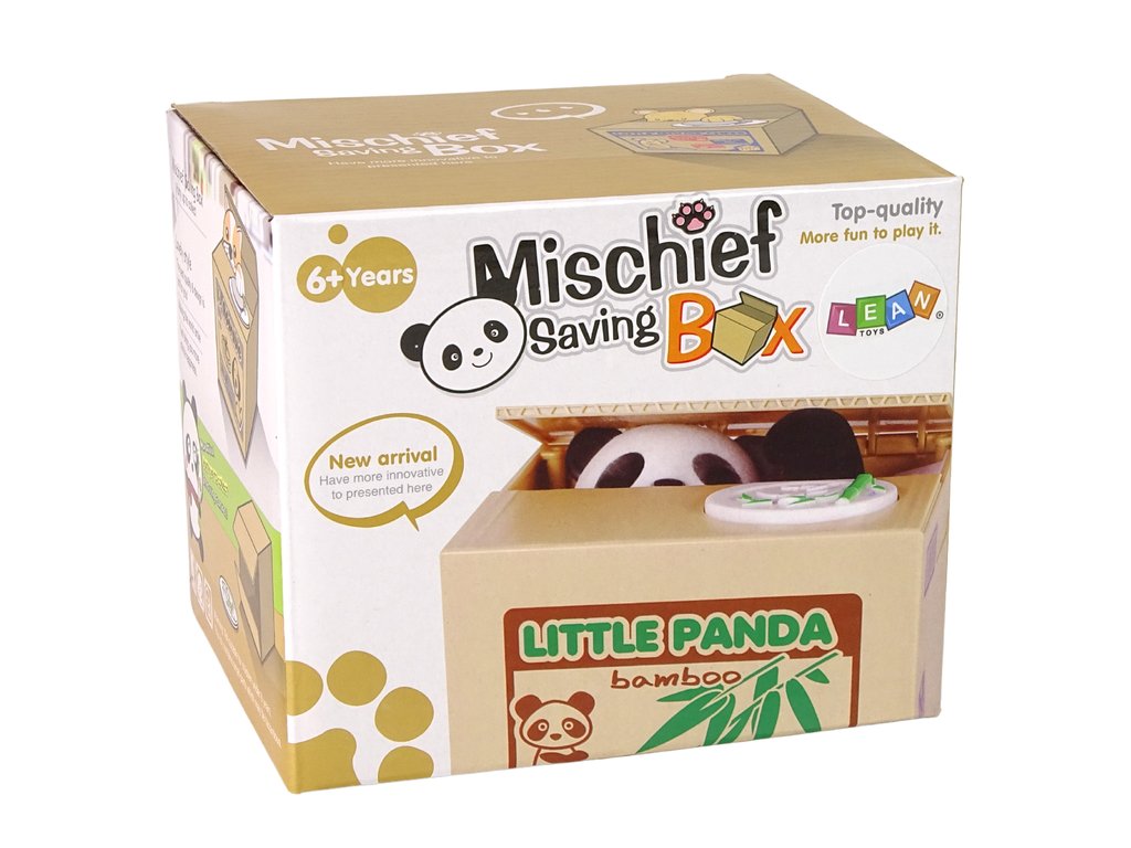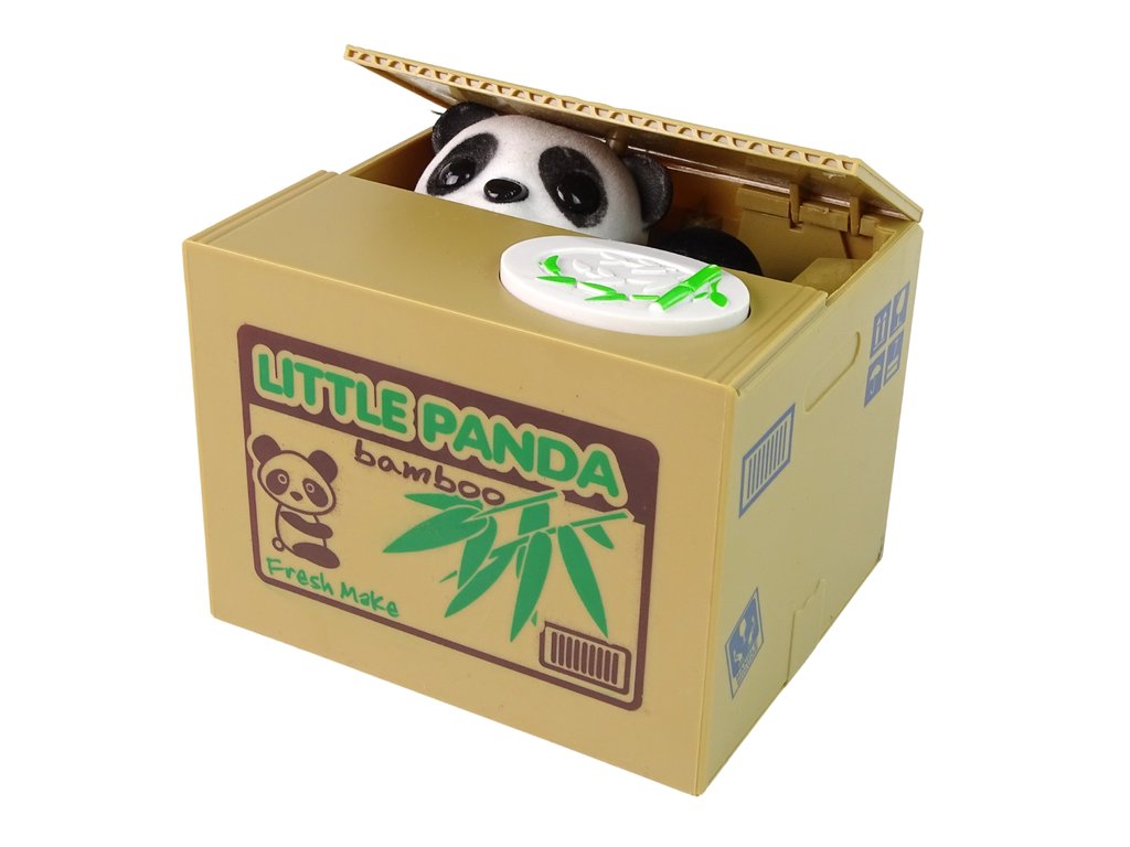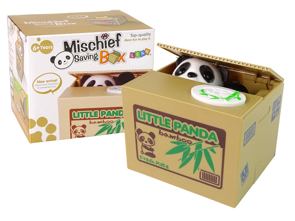 Naučte své děti šetřit peníze zábavnou formou s touto roztomilou panda pokladničkou. Každé dítě si zamiluje sbírání svých úspor a tato pokladnička je ještě více povzbudí k tomu, aby si penízky odkládaly. Stačí stisknout tlačítko na boudičce a panda zvedne víčko a svou tlapkou vtáhne penízky dovnitř.