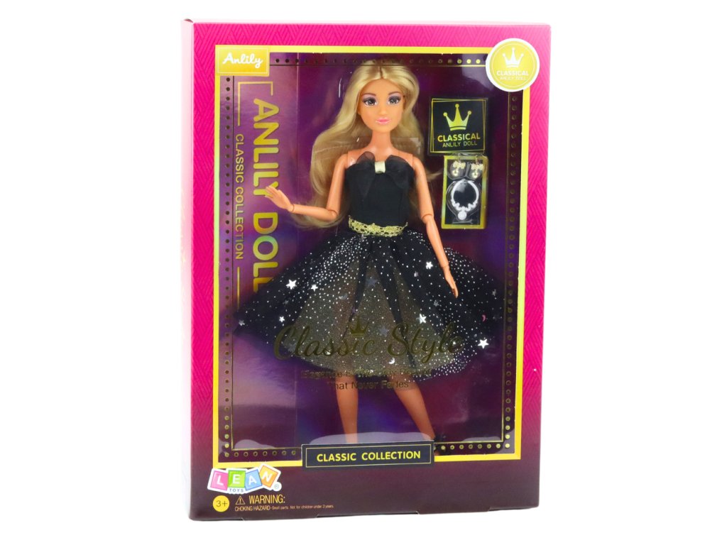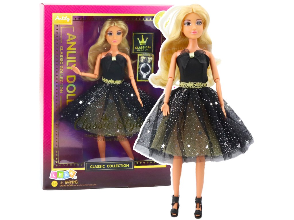 - Lalka w czarnej sukni balowej Anlily se představuje jako elegantní a stylová volba pro děti, které milují hru na domácnost, společenské scény a vytváření vlastních příběhů