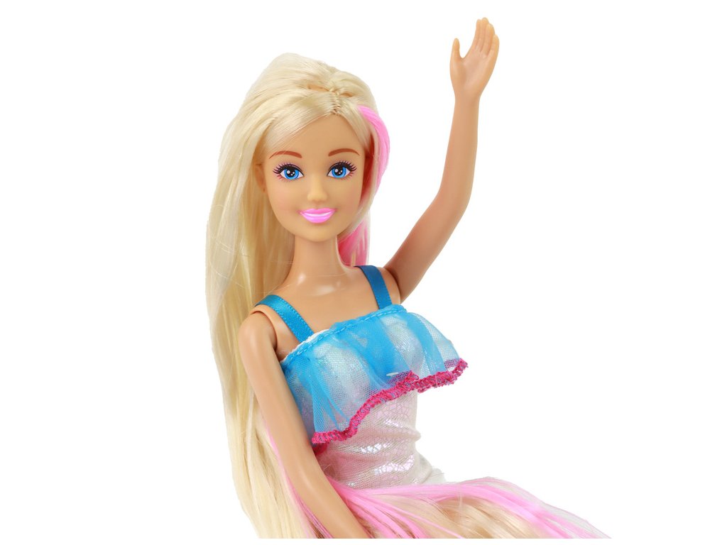 - Tato nádherná panenka s dlouhými blond vlasy a roztomilým růžovým pramínkem je jedinečná svým půvabem a elegancí