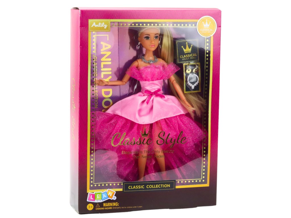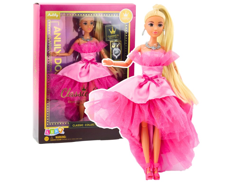 Loutka v růžových plesových šatech Anlily je ideální volbou pro děti, které rády hrají role a vytvářejí pohádkové scénáře.