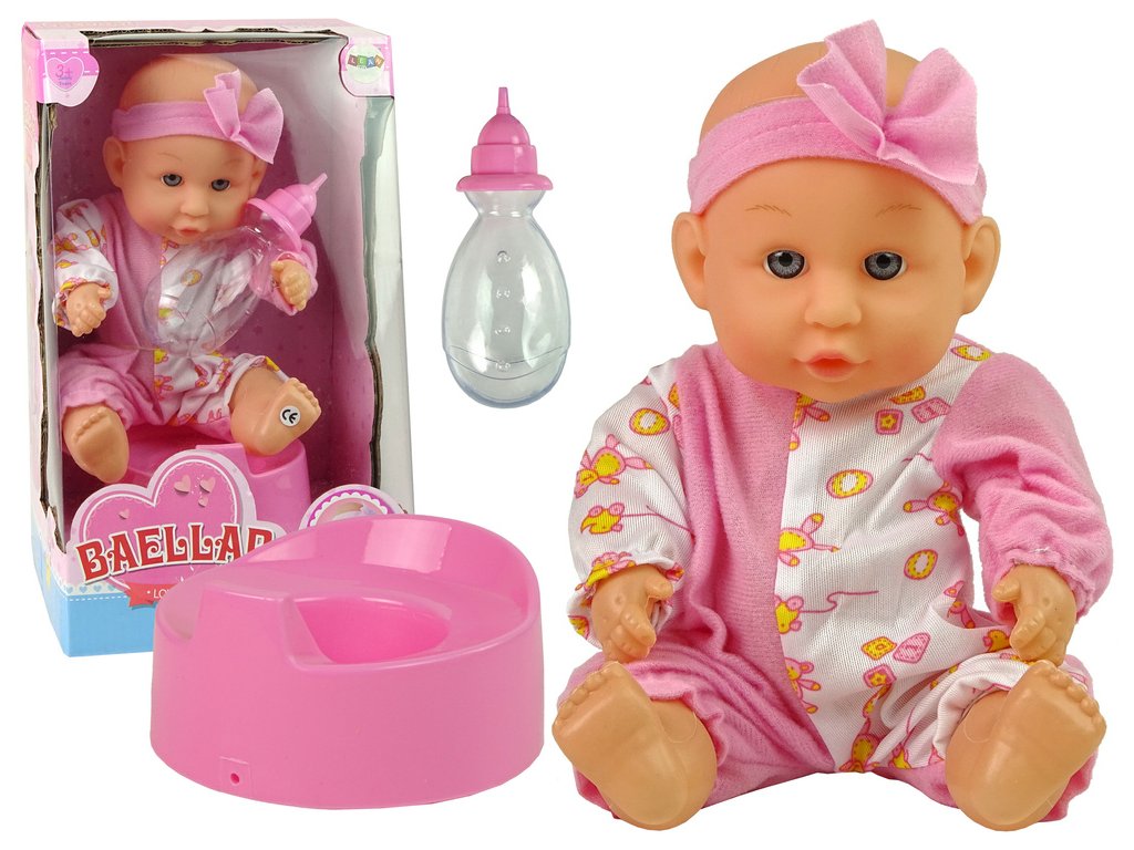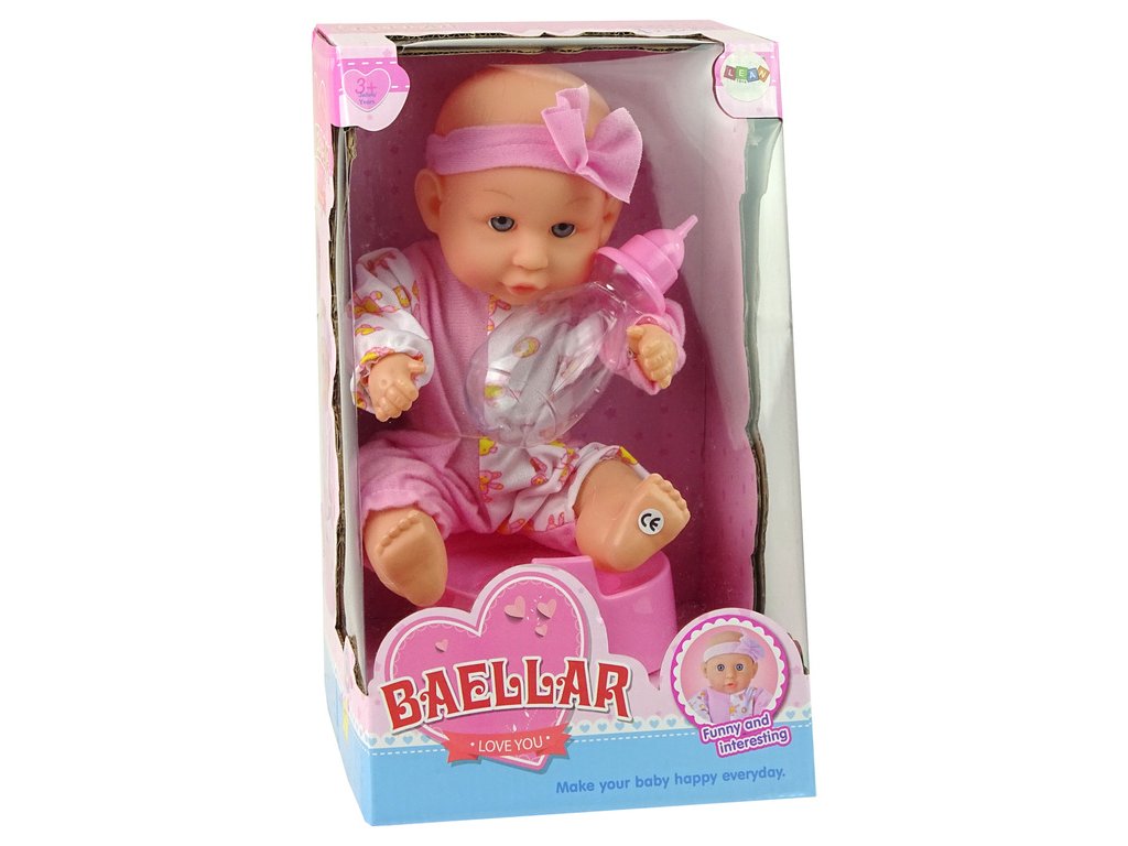 - Panenka Bobas Růžová Nočník Čurá Pije Mašle 24 cm Hra s panenkou rozvíjí představivost, motoriku a manuální dovednosti dítěte