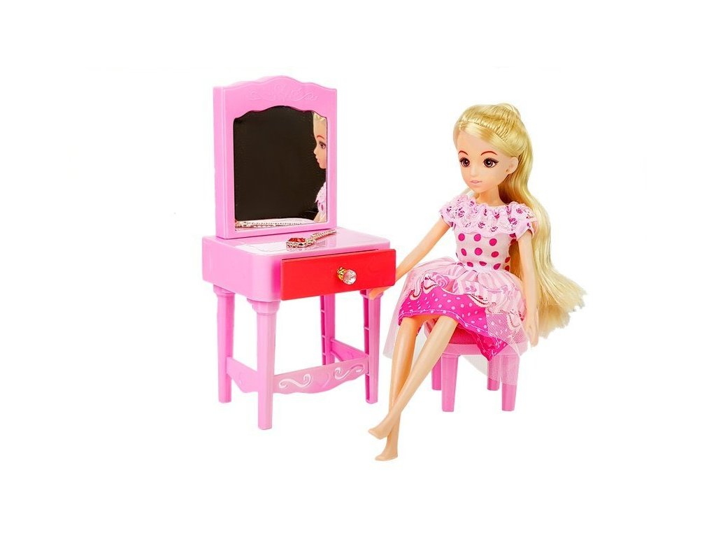 - Výška panenky: 27 cm Rozměry skříně: 23 x 8 x 14 cm Rozměry toaletního stolku: 20x8x9,5 cm Rozměry postele: 29 x 10 x 5 cm Rozměry stoličky: 6 x 6 x 5 cm