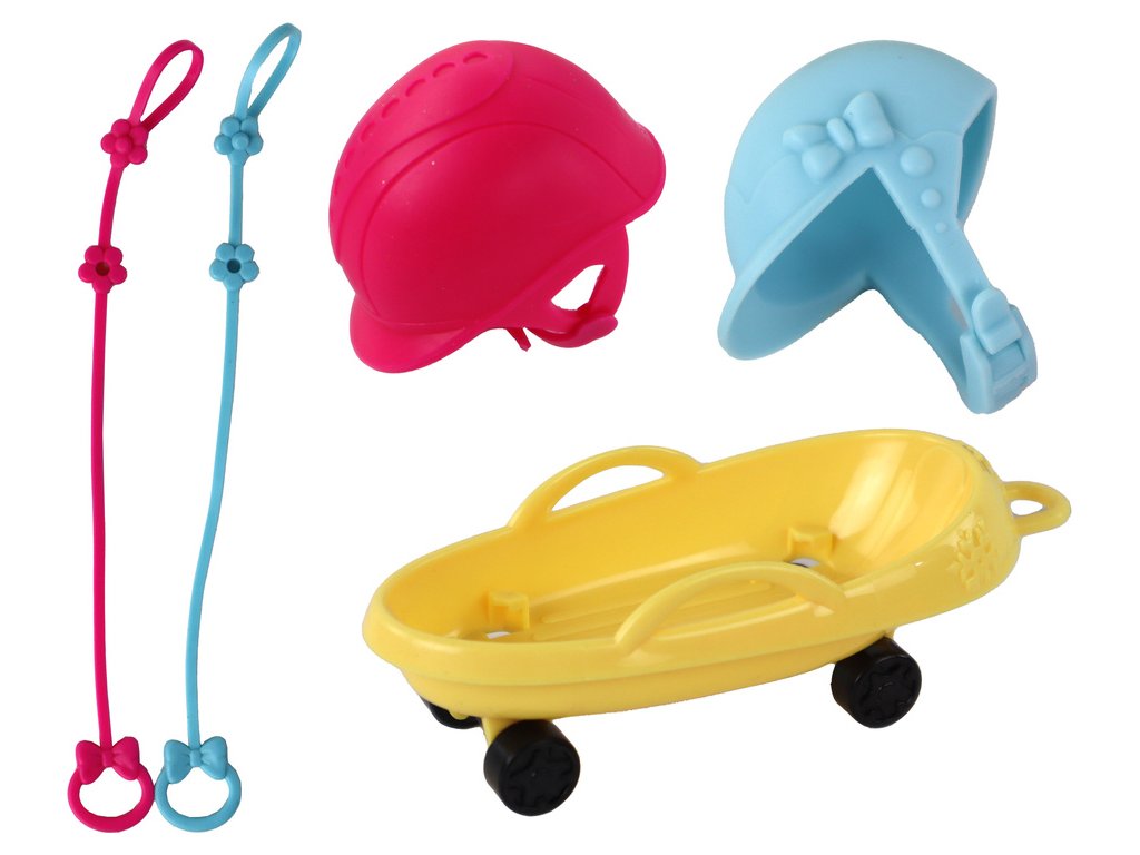 - Obsah sady zahrnuje také malou panenku, psa Husky s vodítkem a vozík pro psa, které otevírají další možnosti pro hru