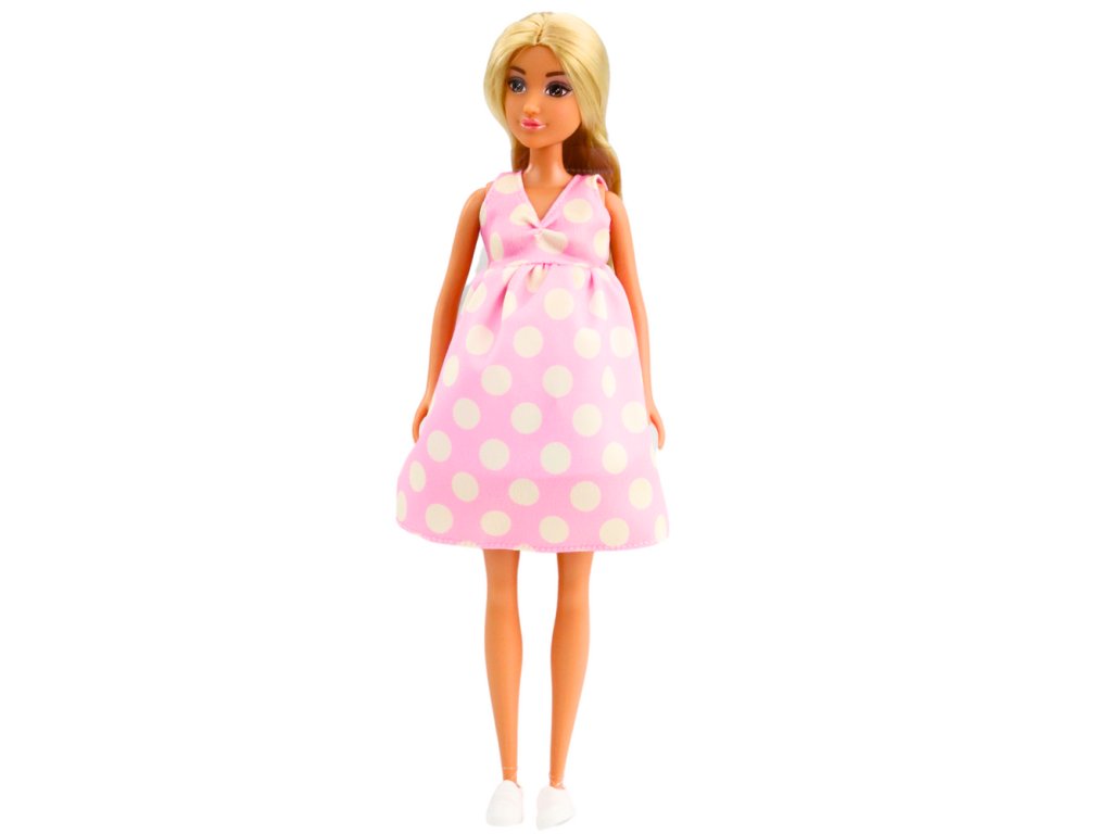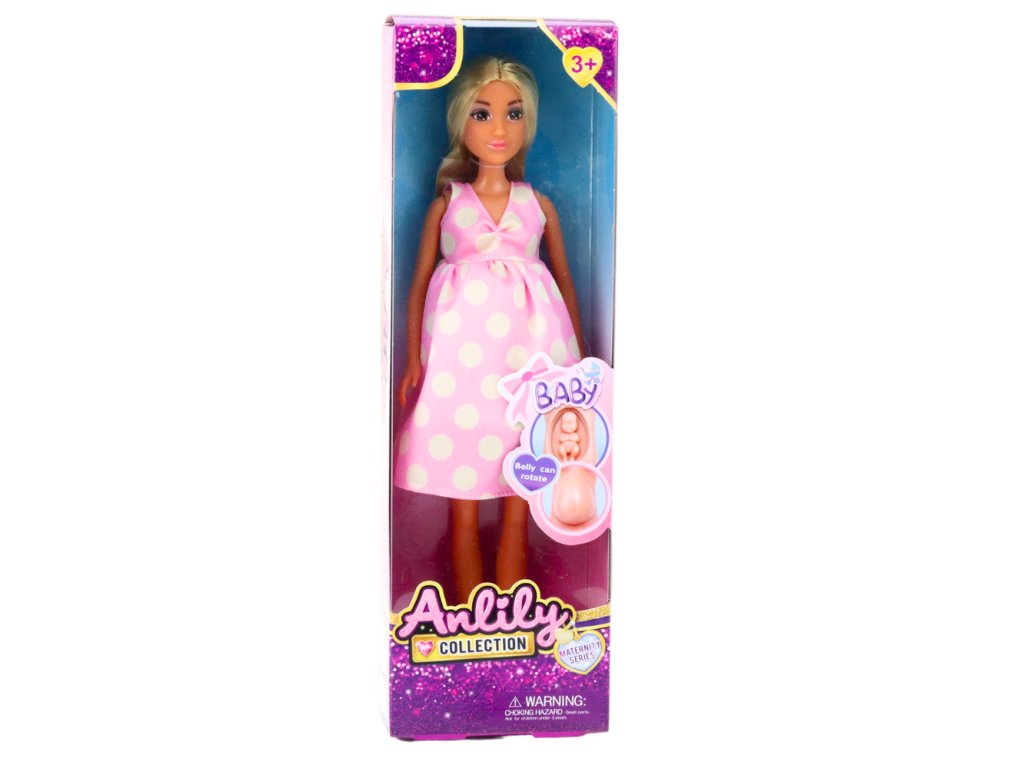 TEHOTNÁ PANENKA V RŮŽOVÝCH ŠATECH S PUNTÍKY Těhotná panenka Anlily v růžových šatech s puntíky je jedinečná hračka, která dětem umožňuje tematickou hru související s rodinou a péčí Panenka představuje budoucí maminku oblečenou v pohodlných a jemných těhotenských šatech, pod nimiž se skrývá překvapení