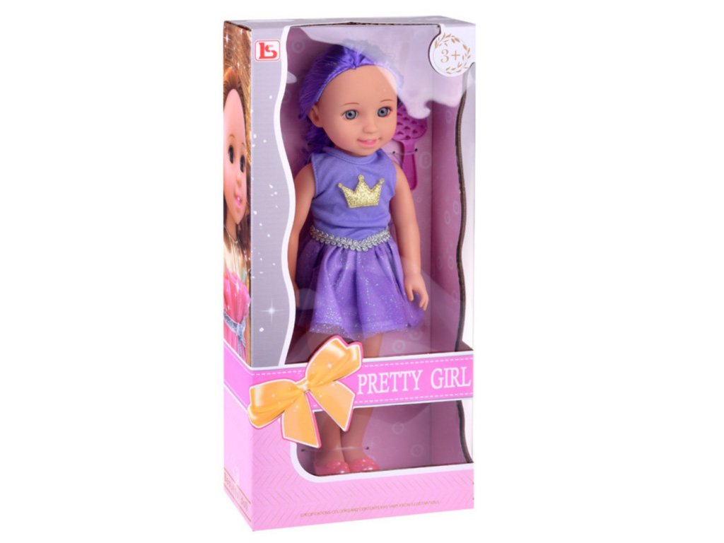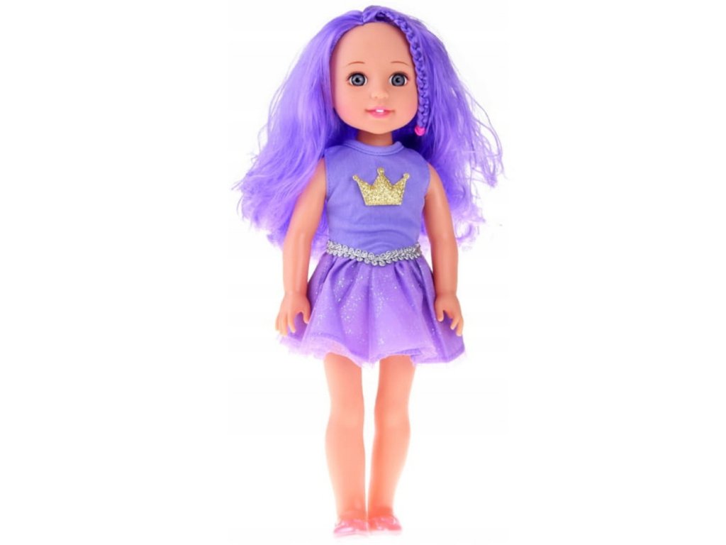 Panenka v Šatech s Korunou Dlouhé Vlasy Fialová Kartáč 38cm