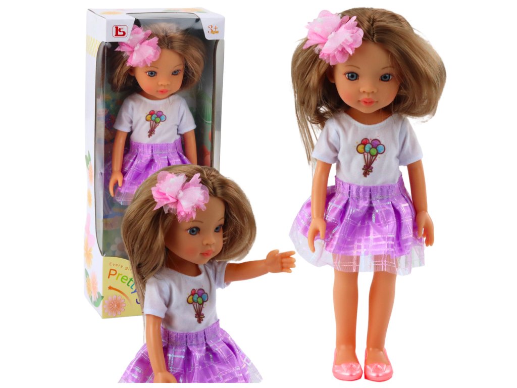LALKA PRETTY GIRL VE FIALOVÉ SUKNI 32 CM Udělat radost každé malé princezně je snadné s okouzlující panenkou Pretty Girl, ideální pro holčičky, které si užívají hru na domácnost, převlékání a vytváření svých módních… Tato panenka zaujme pečlivě vymodelovanou tváří s jemným úsměvem, velkými, výraznými očima a hladkým účesem v barvě světle hnědé