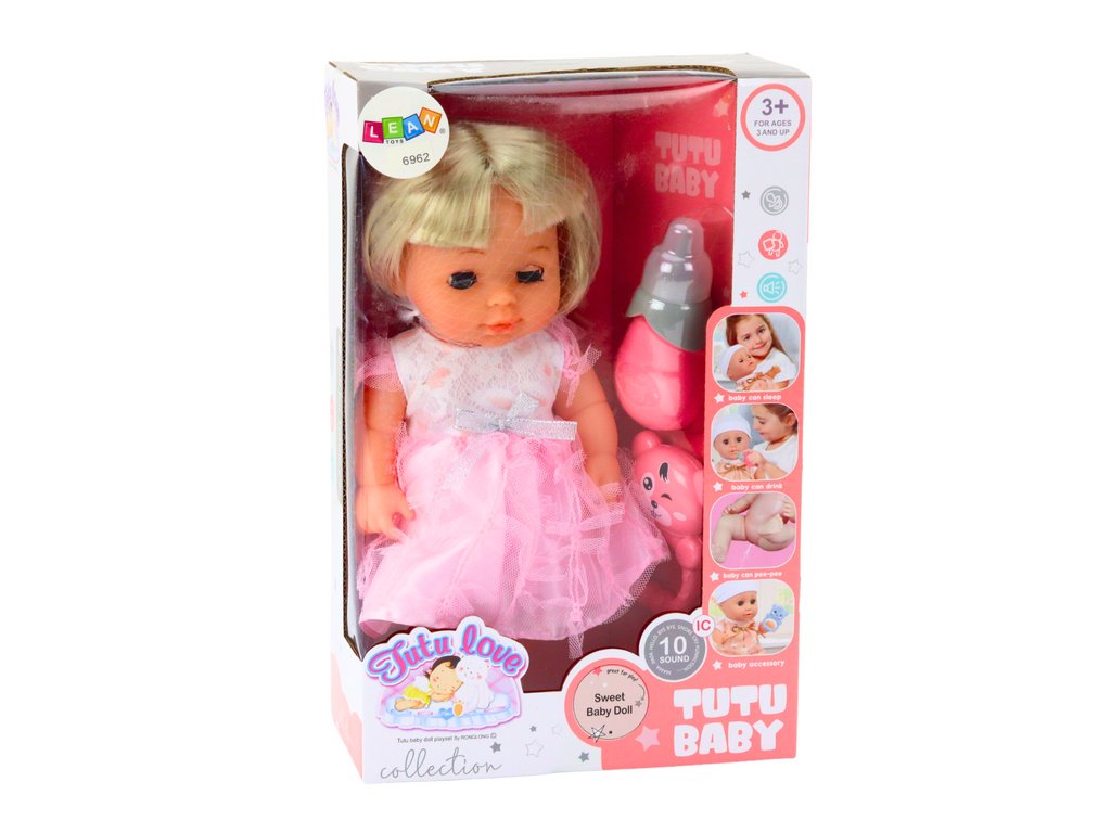 - Panenka ve světle růžových šatech s čůrací funkcí je ideální volbou pro každé dítě, které rádo pečuje o své hračky a chce se cítit jako skutečný rodič