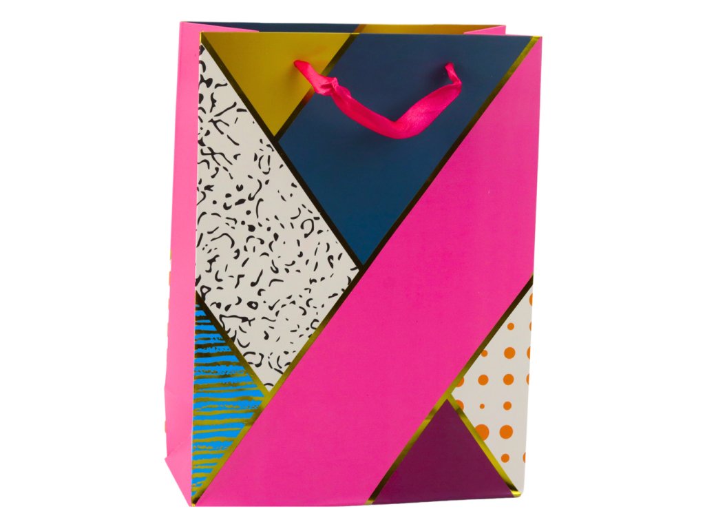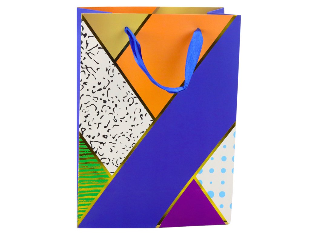 Papírová dárková taška Geometrické vzory 23 x 18 x 10,5 cm Dárková taška s geometrickými vzory je ideální volbou pro elegantní a stylové zabalení každého dárku Jedinečný geometrický design v kombinaci s živými a výraznými barvami dodává tašce osobitý charakter