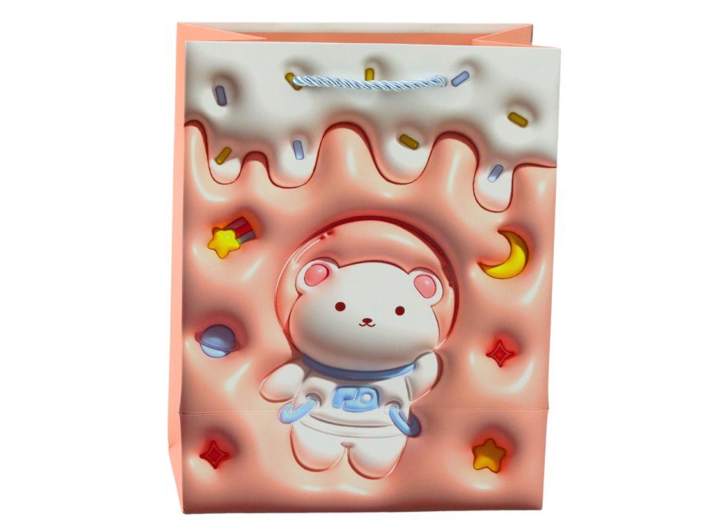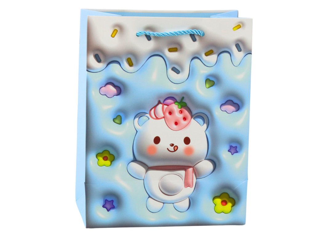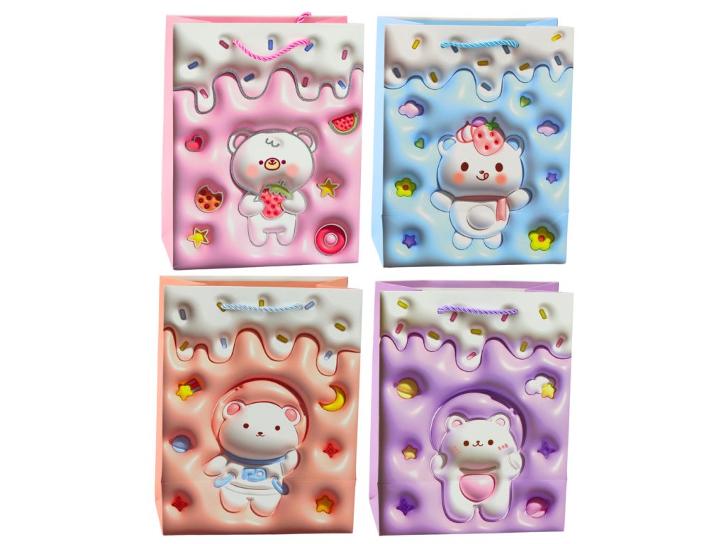 - Představujeme vám roztomilou papírovou dárkovou tašku s motivem medvídka v pastelových barvách, která je perfektní pro každou příležitost