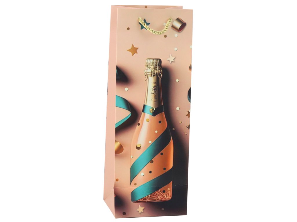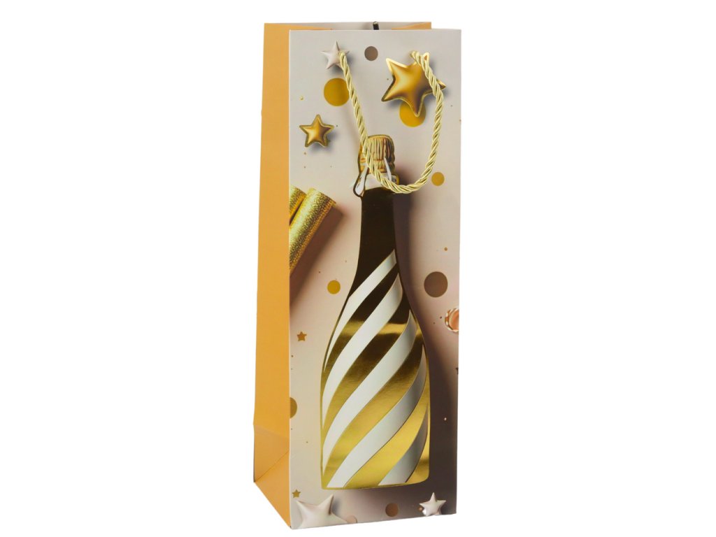 Dárková taška na láhev s motivem šampaňského je elegantní a efektní způsob, jak výjimečně zabalit alkohol nebo jiný nápoj pro jakoukoliv příležitost.