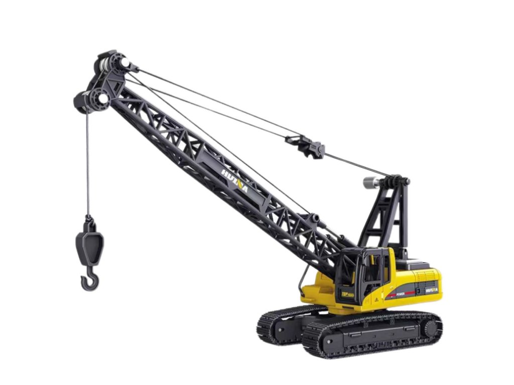 - Huina kovový pásový jeřáb v měřítku 1:50 je precizně zpracovaný model, který věrně napodobuje skutečné stavební stroje
