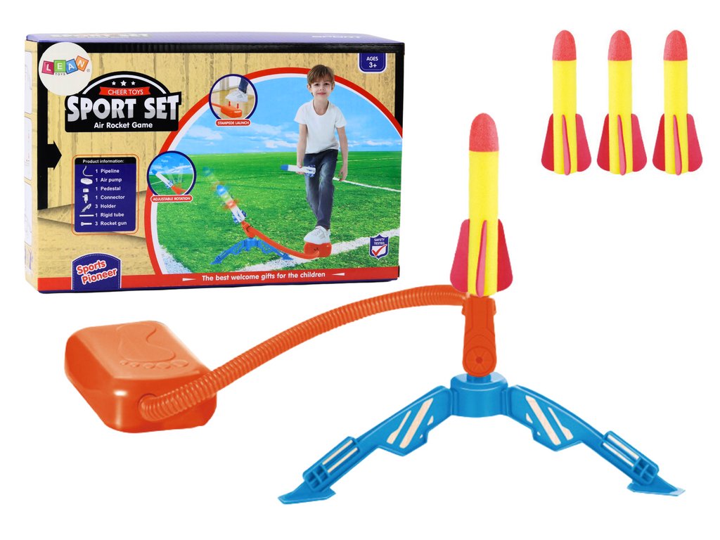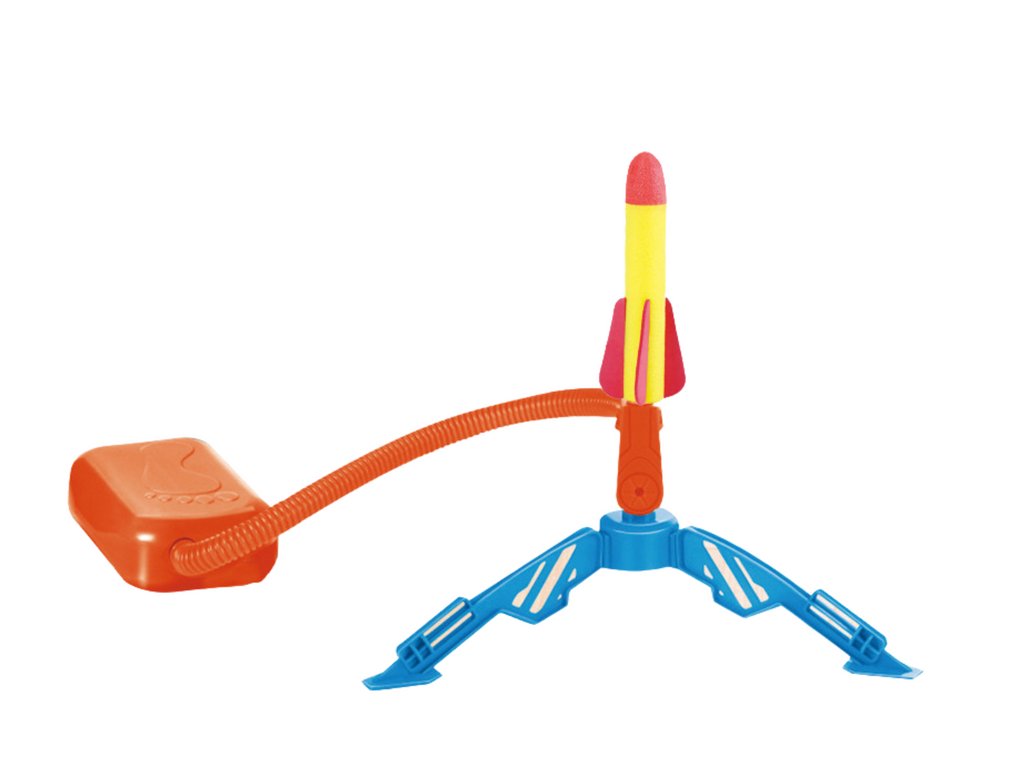 - Po sestavení se hra promění ve vzrušující dobrodružství, kdy děti vystřelují pěnové rakety pomocí jednoduchého stlačení pumpičky nohou, které rakety katapultuje vysoko do oblak