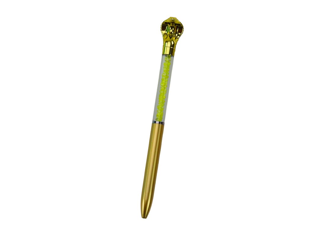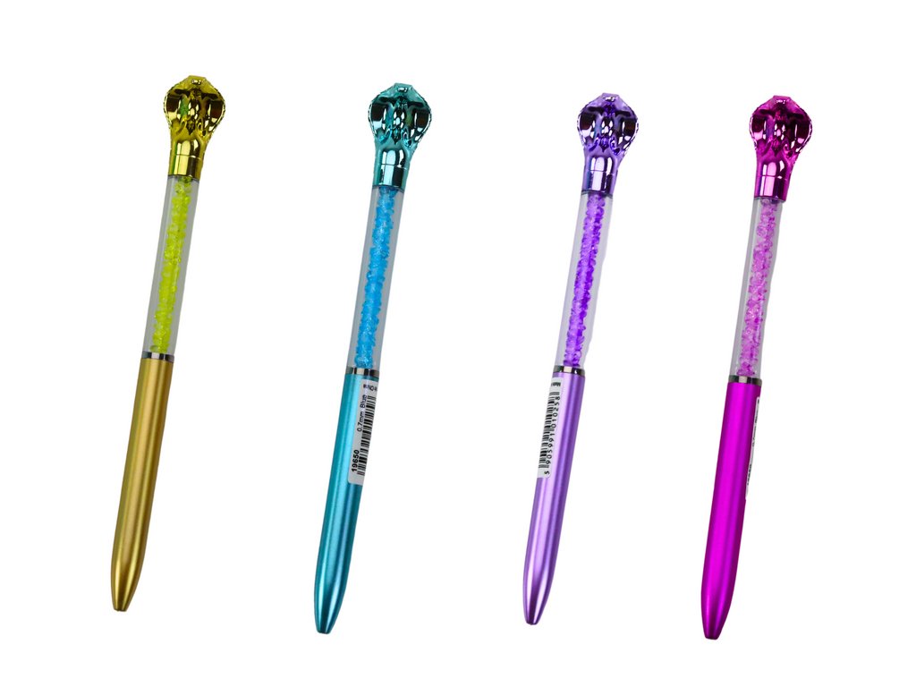 Průhledný obal pera je vyplněn malými diamantíky, které vytvářejí jemný lesk a dodávají každému použití luxusní charakter Jeho elegantní vzhled činí pero ideálním doplňkem jak pro každodenní použití, tak pro speciální příležitosti