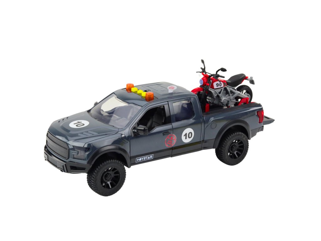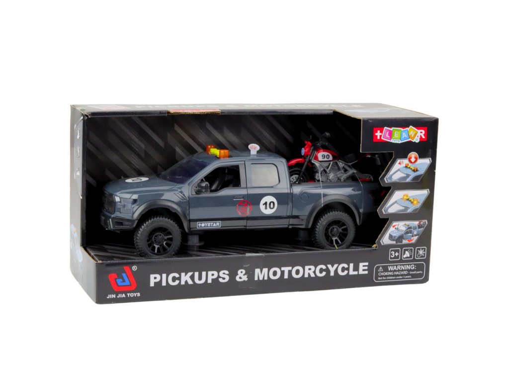 - Velký model pickupu s motocyklem je ideální hračkou pro děti, které milují terénní vozidla, realistické detaily a interaktivní zábavu