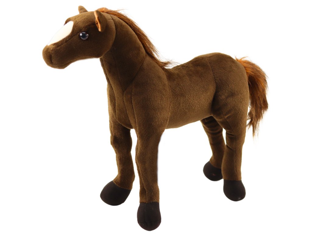 - Ciemně hnědý plyšový kůň o rozměrech 40 cm x 37 cm, který se stane nepostradatelným společníkem vašeho dítěte
