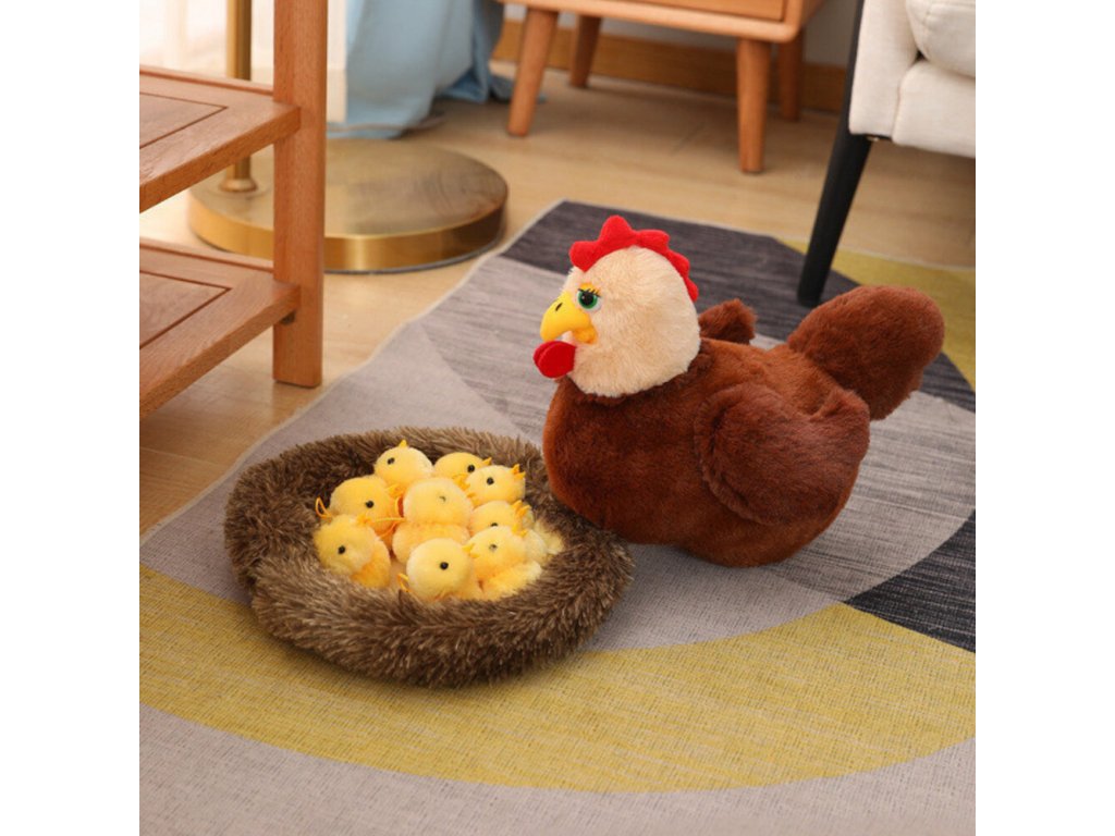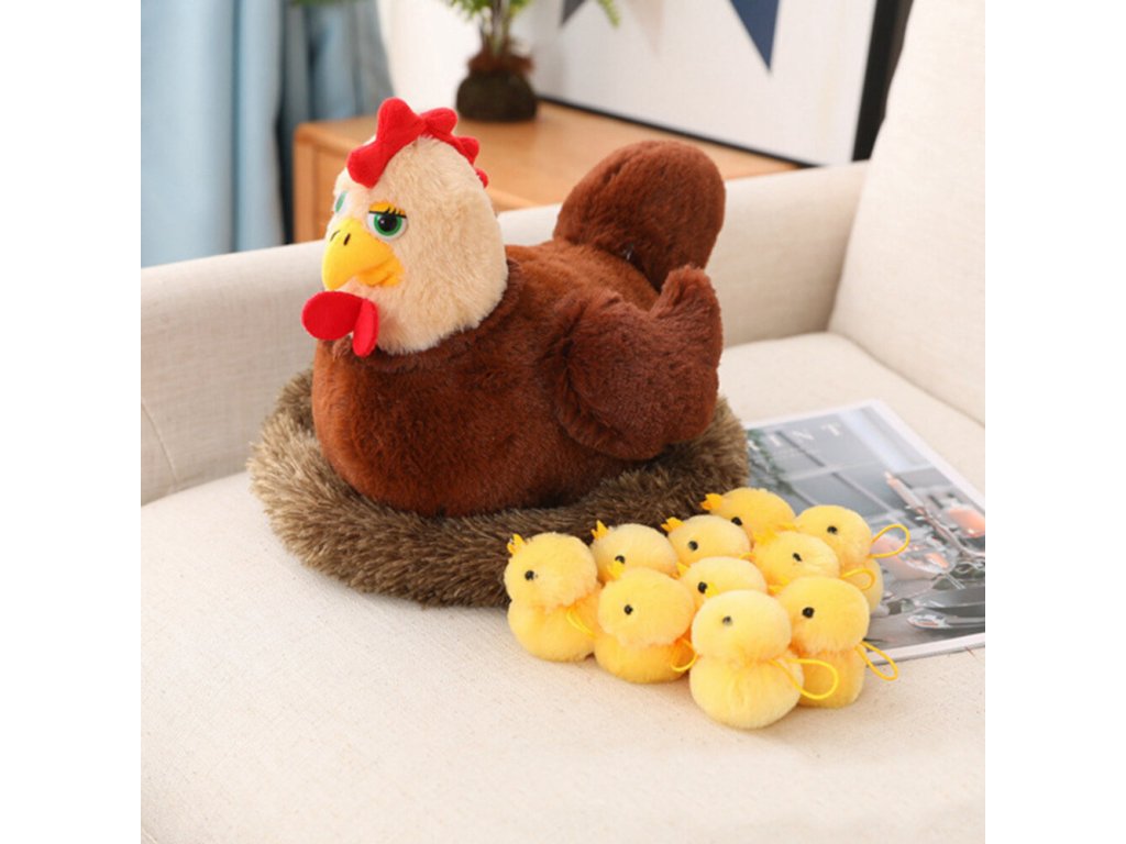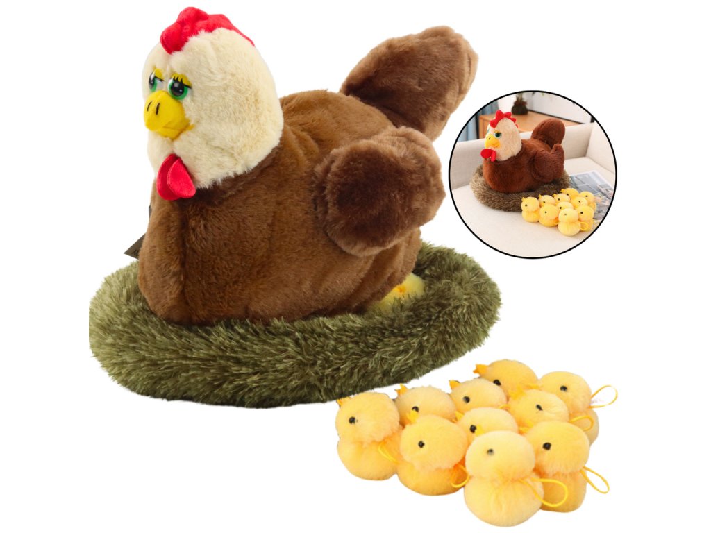 Plusová slepice s kuřátky je roztomilá a měkká hračka, která potěší každé dítě a stane se oblíbenou součástí hry. Vyrobena z vysoce kvalitního, příjemného na dotek plyše, skvěle se hodí k mazlení, hraní na farmu a rozvíjení kreativity. Sada se skládá z velké slepice sedící na měkkém hnízdě a 10 roztomilých kuřátek, které lze vytahovat a schovávat pod křídly maminky, což dodává hře interaktivní charakter.