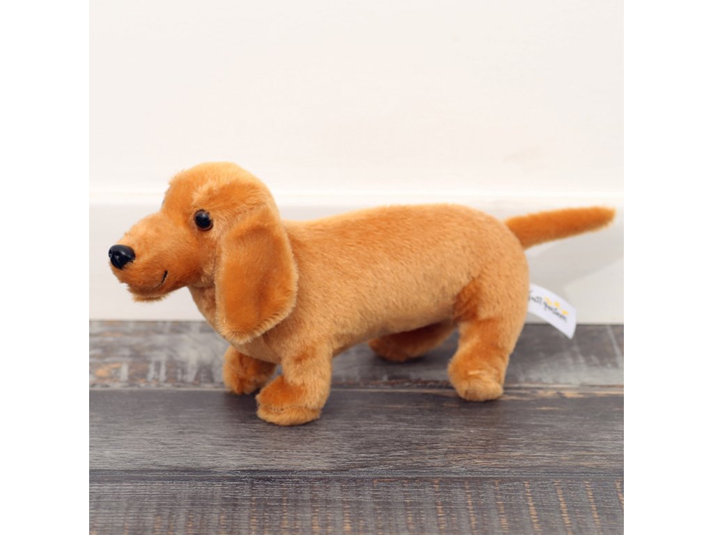 - Úžasný Plyšový pes jezevčík v světle hnědé barvě je dokonalým spojením roztomilosti a realismu