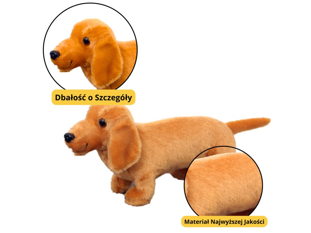 - Plusový Plyšový Pes Jezevčík je mimořádně půvabná hračka, která okamžitě upoutá pozornost dětí svým realistickým vzhledem, pečlivě propracovanými detaily a měkkou formou