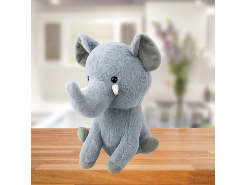 PLYŠOVÝ SLONÍK ŠEDÝ – 26 CM Plyšový sloník o výšce 26 cm je roztomilá a měkká hračka, která okouzlí svým jednoduchým, přátelským vzhledem a klasickou barvou.
