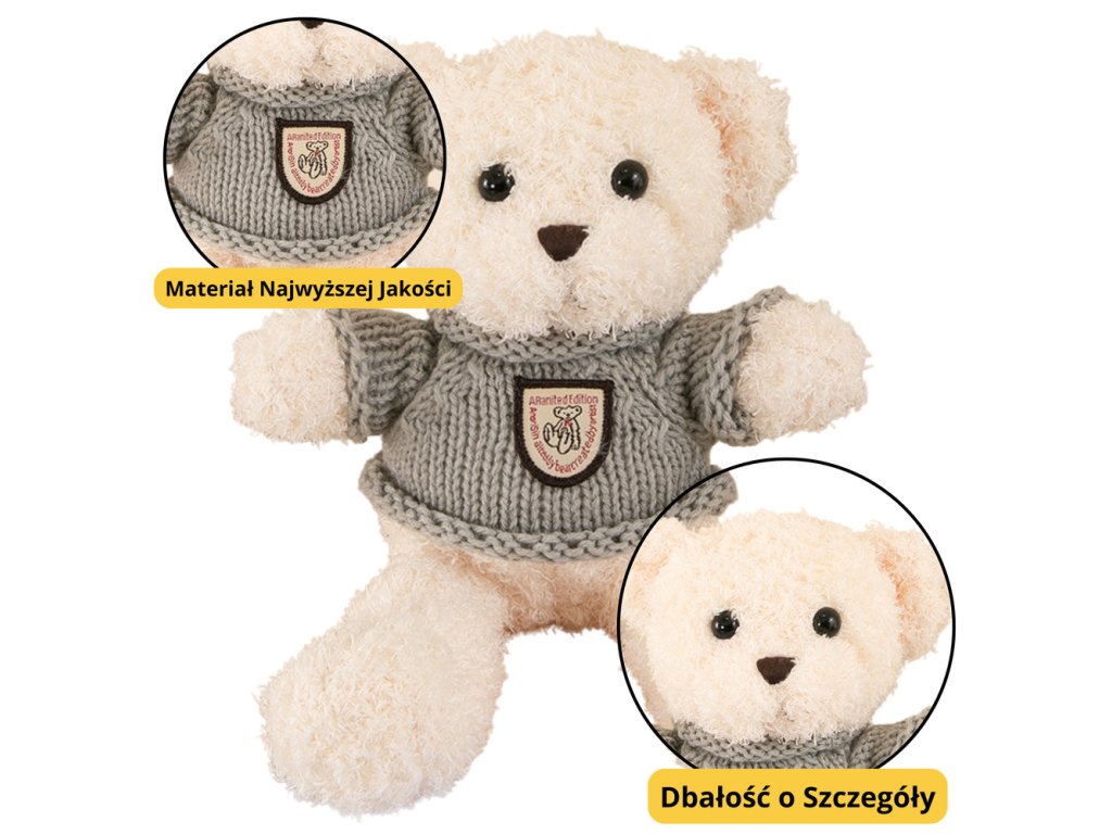 - Objevte kouzlo tradičních plyšových hraček s naším roztomilým plyšovým medvídkem v šedém svetříku