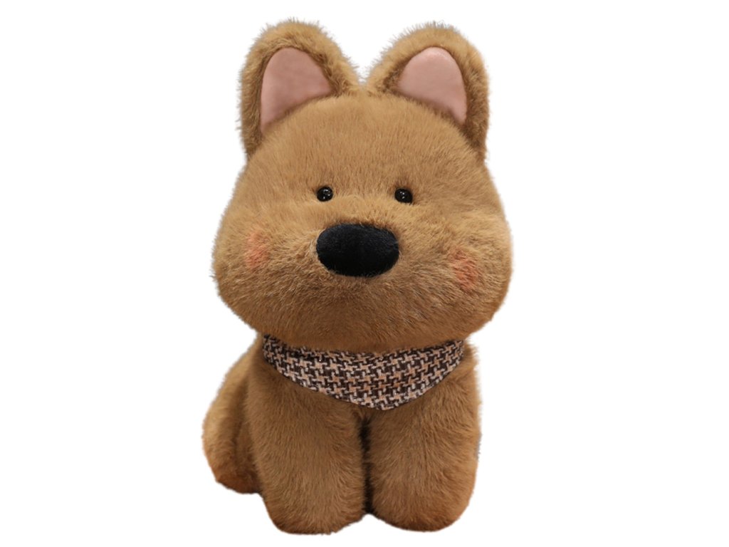 Plyšový pejsek s šátkem je nádherná hnědá hračka, která na první pohled upoutá svou roztomilostí Tato maskotka je promyšleně navržena a je charakteristická měkkou srstí, velkým černým nosem a jemnými ruměnci na tvářích