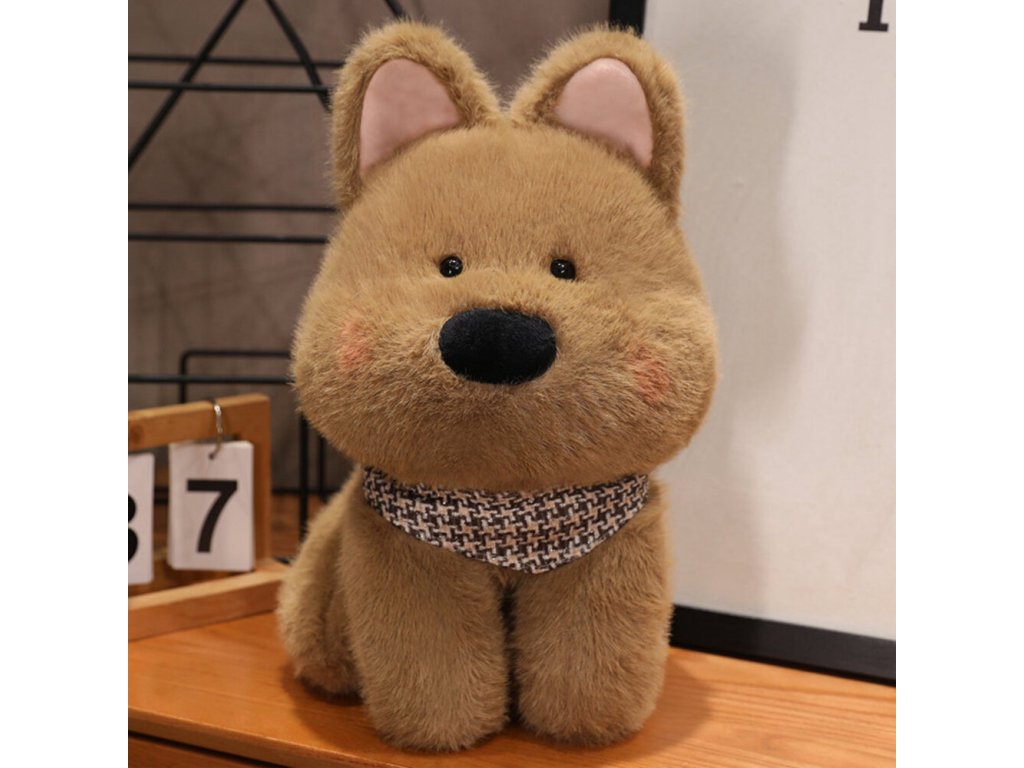 - Plyšový pejsek s šátkem je nádherná hnědá hračka, která na první pohled upoutá svou roztomilostí