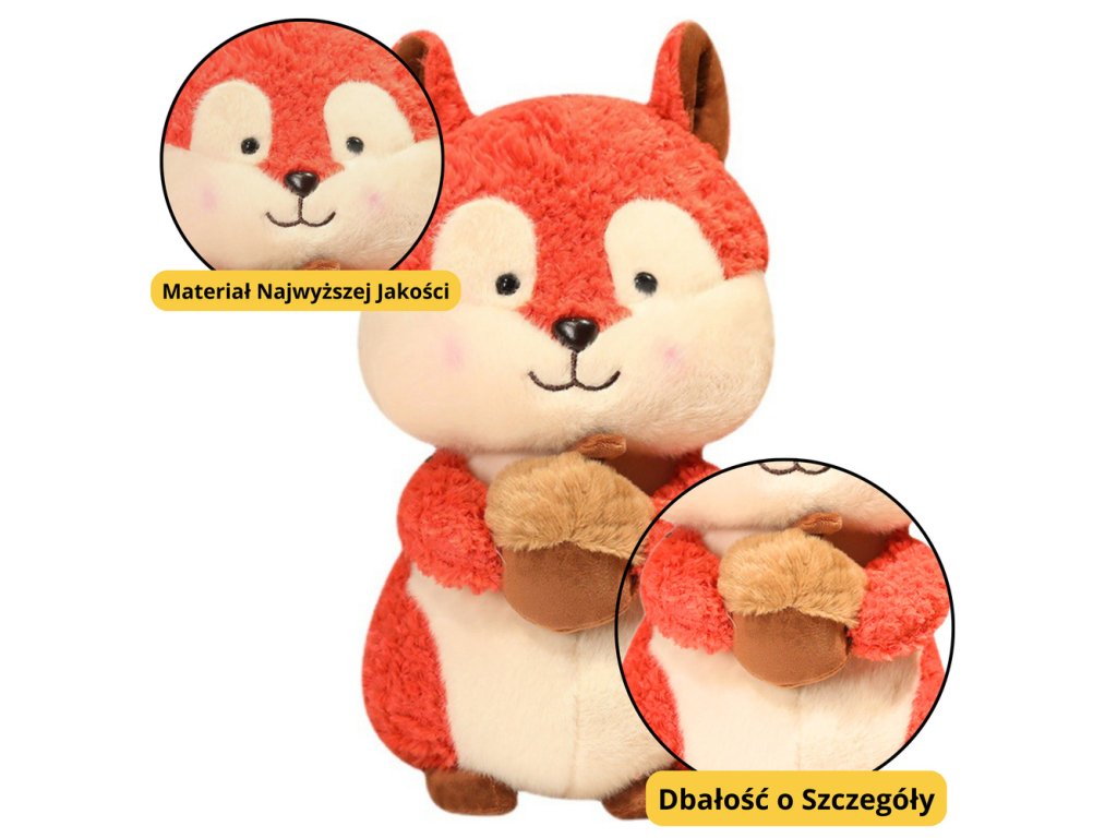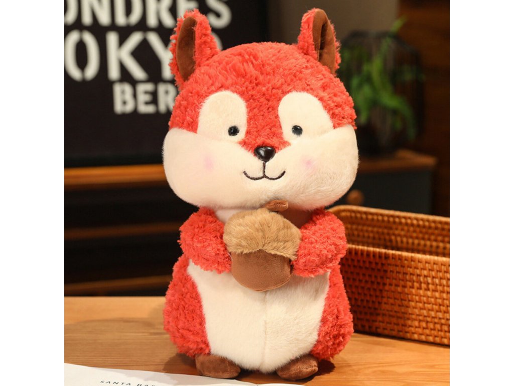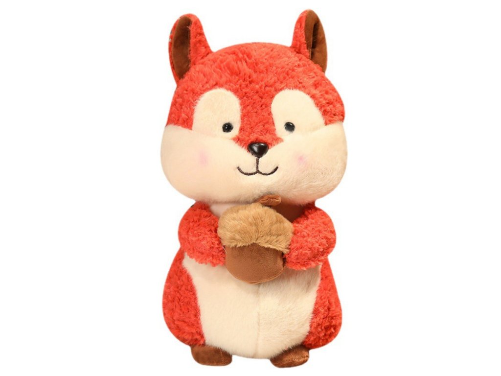 - Plyšová veverka s oříškem ve velikosti 25 cm je šarmantní a roztomilá hračka, která okouzlí každé dítě svým hřejivým vzhledem a pečlivým zpracováním