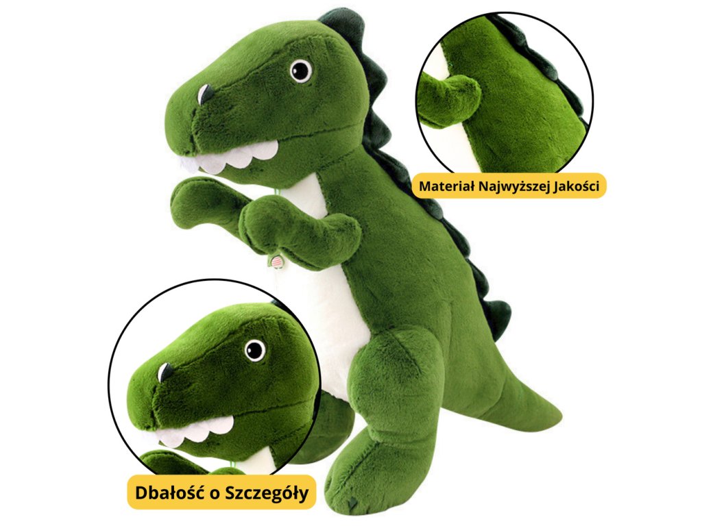 Díky měkkému, zelenému kožíšku a kontrastnímu bílému bříšku se dinosaurus prezentuje velmi efektně a vybízí ke hře Hračka je vyrobena z vysoce kvalitního plyše, který je příjemný na dotek a úplně bezpečný pro děti