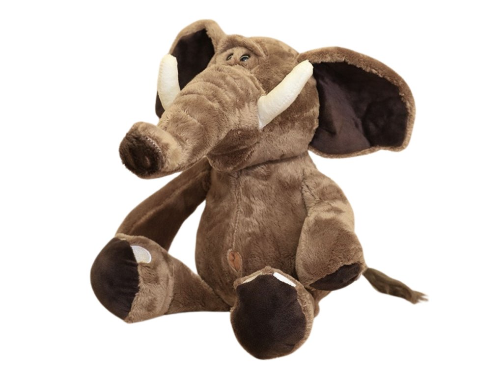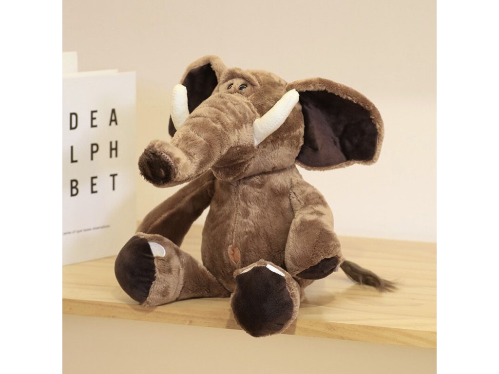 - Tento hnědý slon s dlouhým chobotem a bílými kly je vyroben z měkkého plyše, což z něj činí příjemného společníka nejen na hraní, ale i jako stylovou dekoraci do dětského pokoje