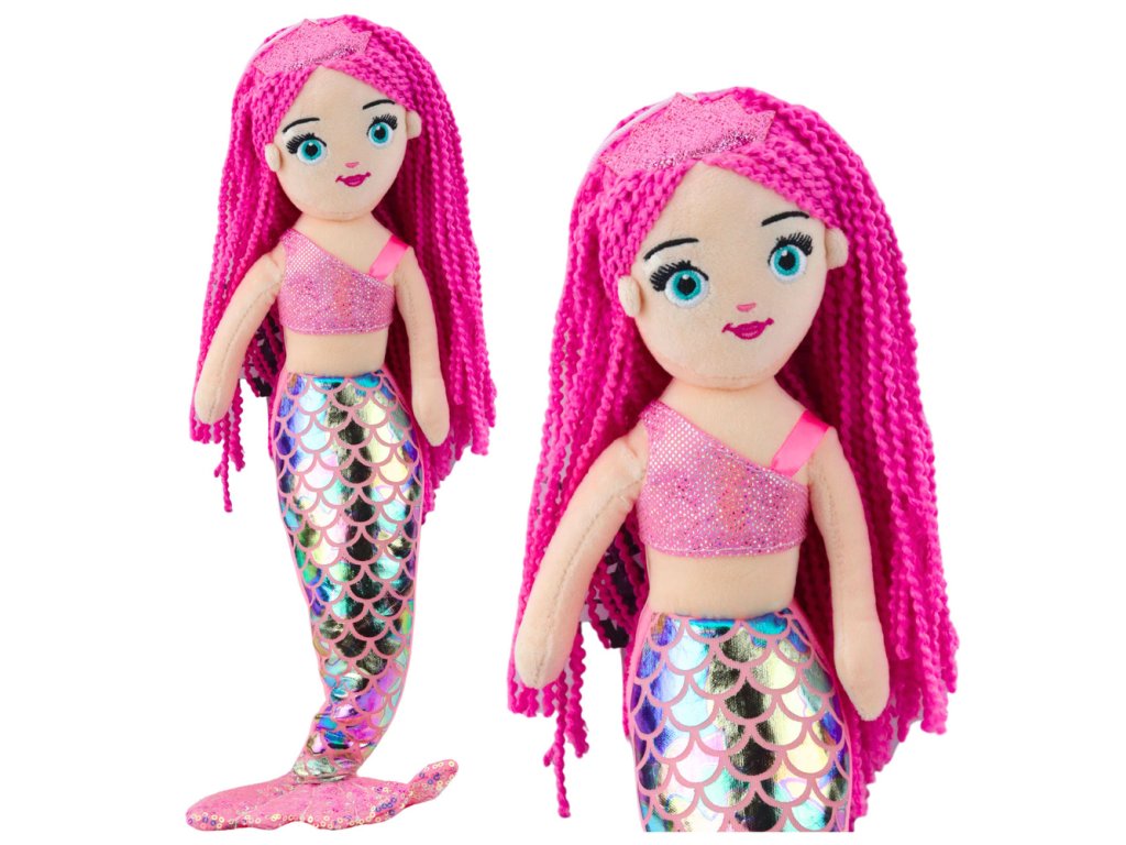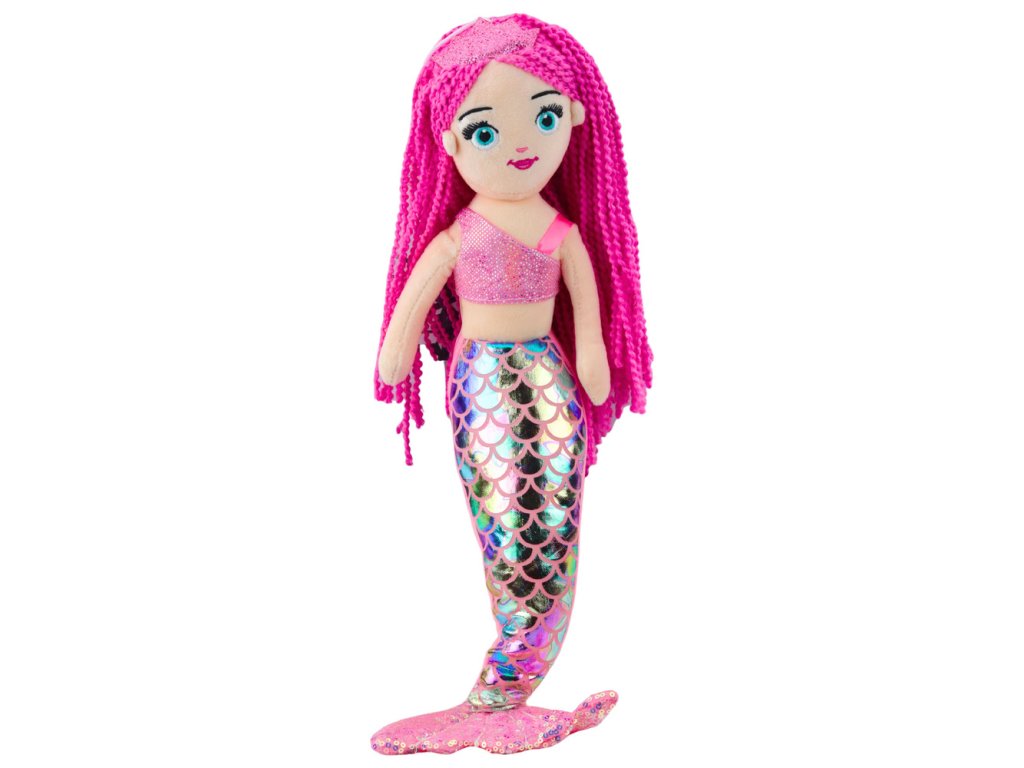 - Plyšová mořská panna s holografickým ocasem v růžové barvě a výšce 48 cm je ideální společnicí pro dětské hry, která kombinuje pohádkový vzhled s měkkým a bezpečným provedením