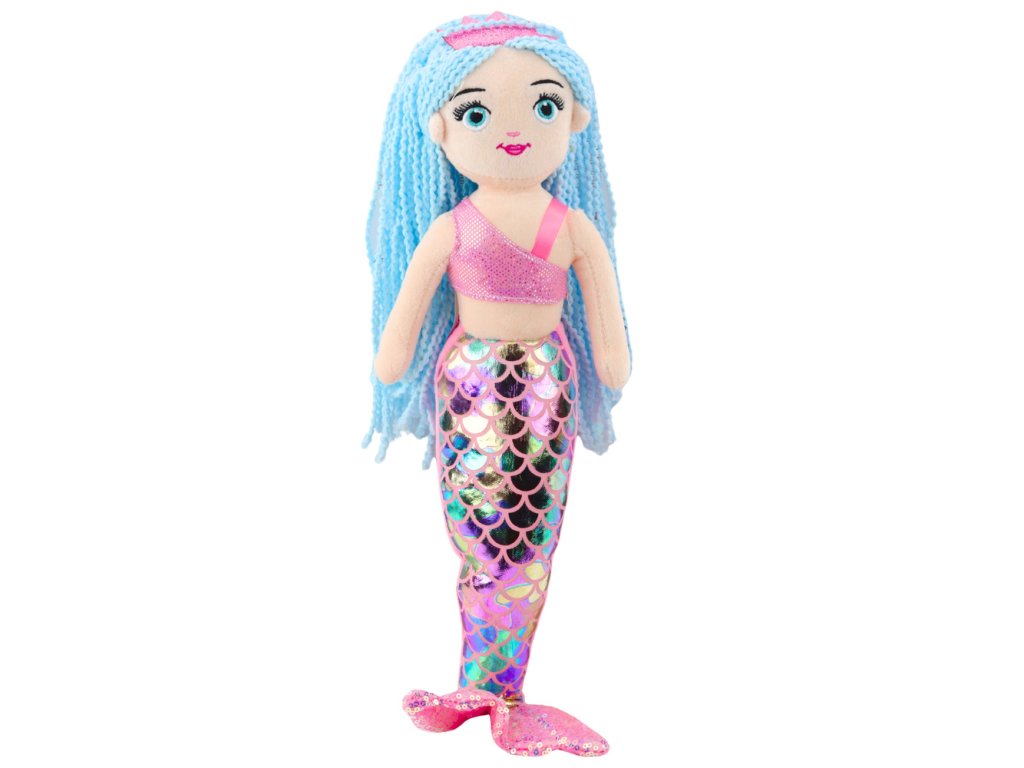 - Plyšová mořská panna s holografickým ocasem v růžovo-modré barvě o výšce 48 cm je výjimečná hračka, která vyniká nejen svou velikostí, ale především estetickým a pohádkovým vzhledem