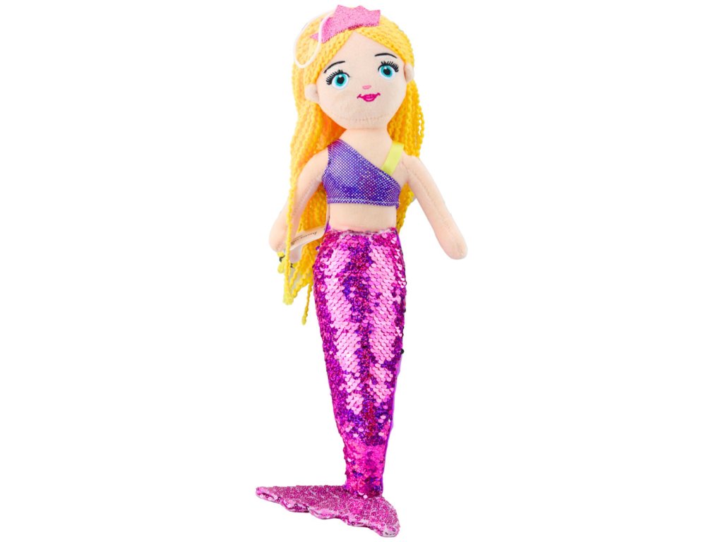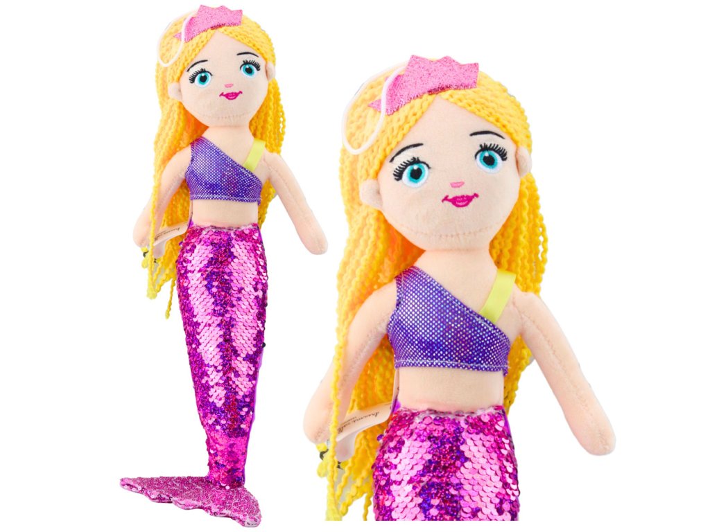 - Plyšová mořská panna s flitrovým ocasem fialová 48 cm je velká plyšová hračka, která zaujme precizním provedením a krásným vzhledem