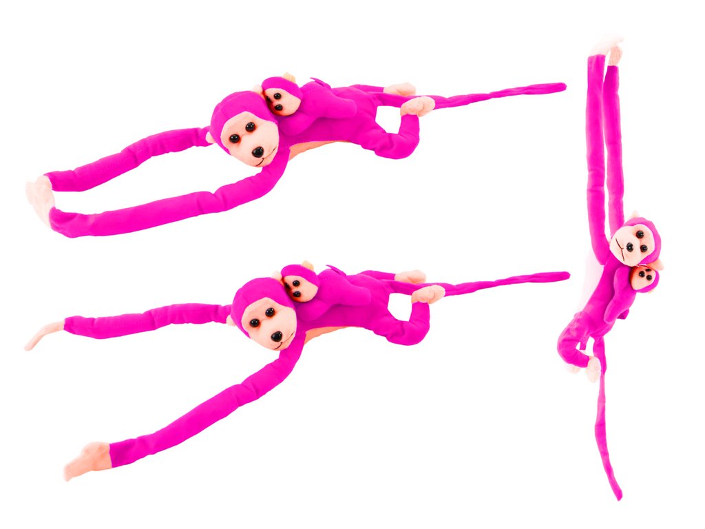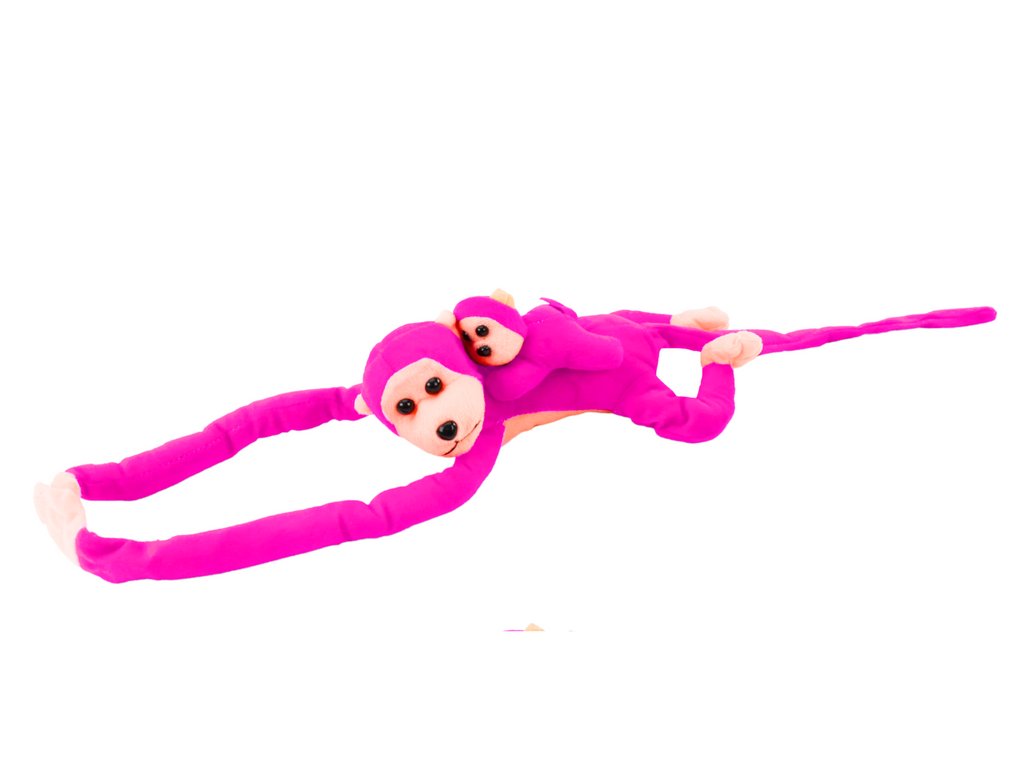 - tmavě růžovou plyšovou opičku s mládětem, rozkošnou hračku, která si získá vaše srdce!