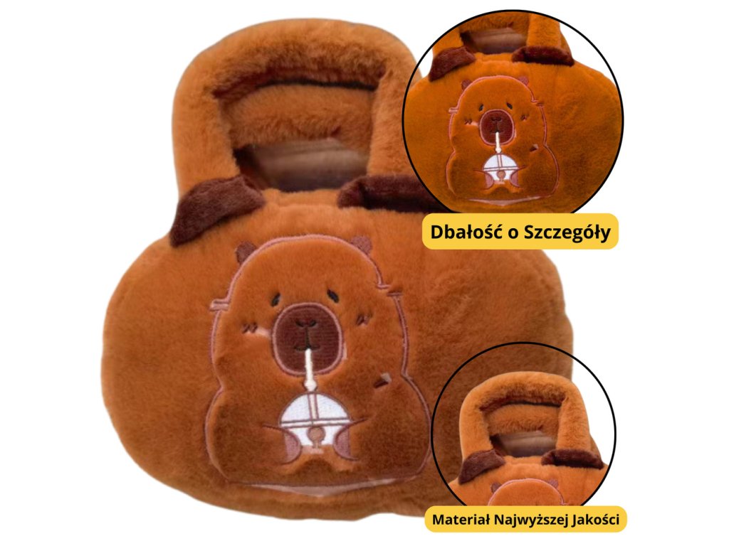 - Plyšová taška s kapybarou představuje funkční a roztomilý doplněk, který nadchne měkkým provedením a originálním designem inspirovaným říší zvířat