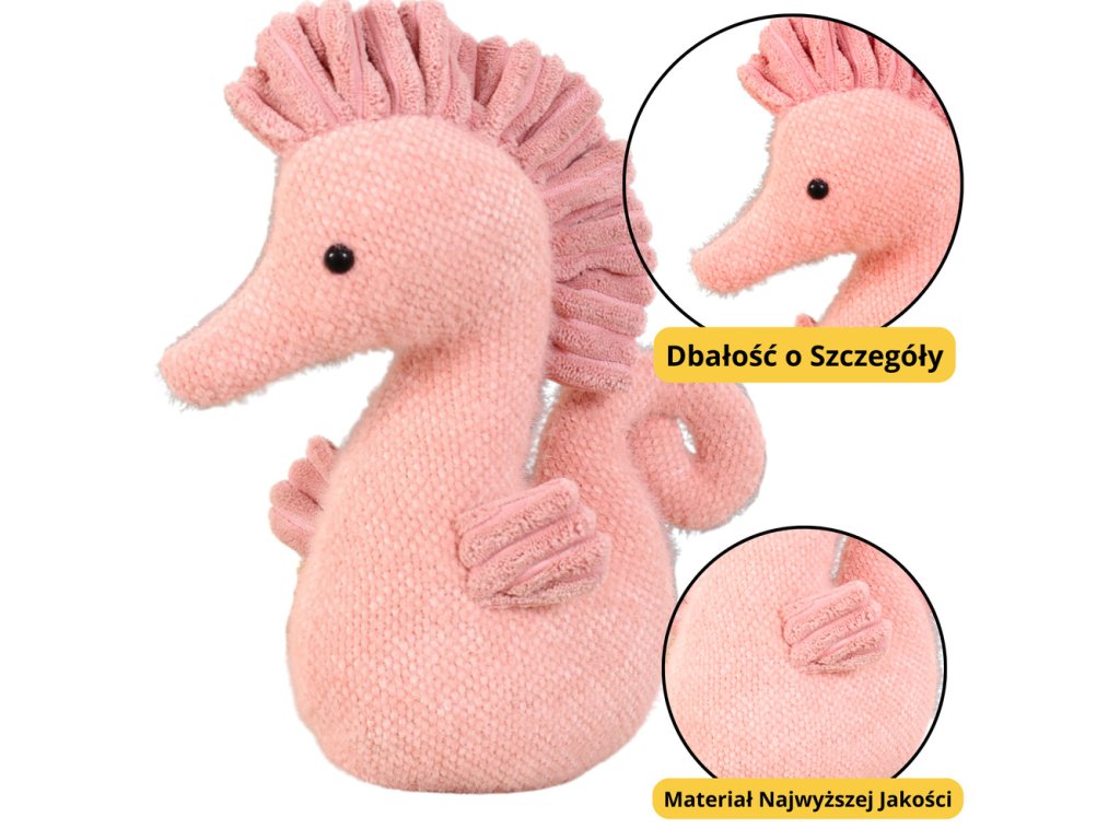 Plyšové zvířátko Mořský kůň Růžový 25cm je kouzelný společník pro každou dětskou zábavu a spánek, vhodný pro děti všech věkových kategorií Je vyroben z mimořádně měkkého a příjemného materiálu, který svou jemností přímo vybízí k častému mazlení