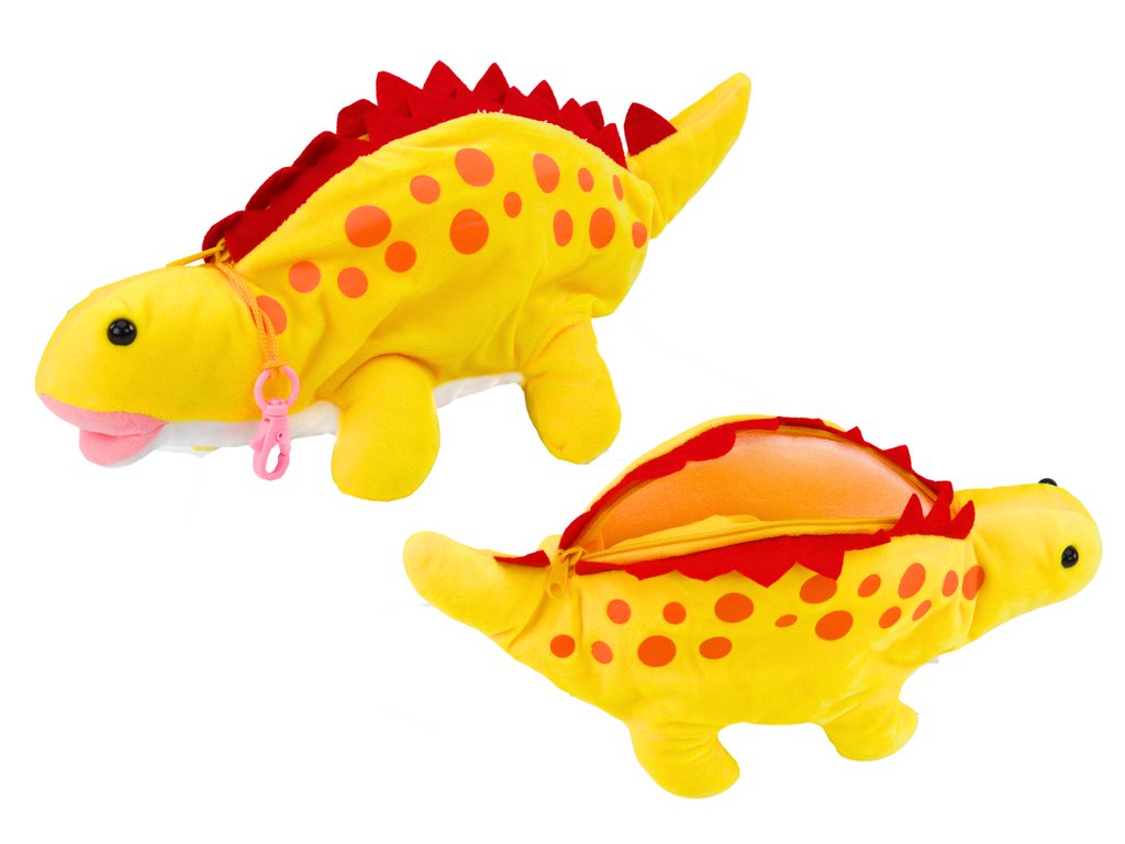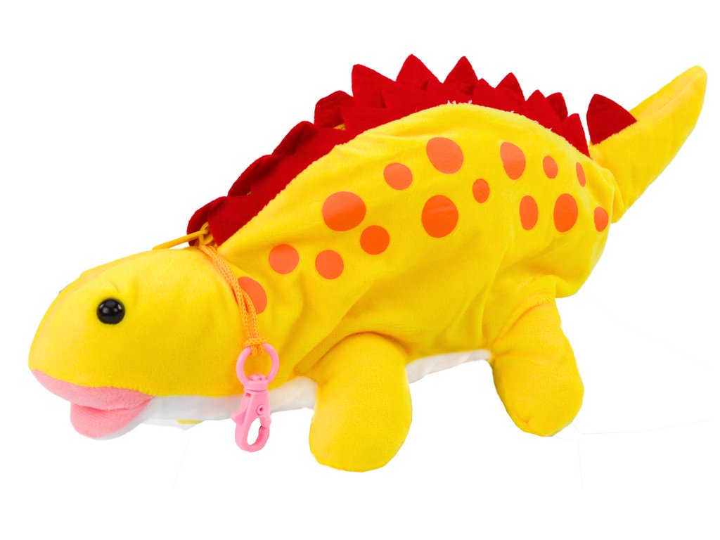 Plušový Dinozaur Pouzdro Úložný Přívěsek Žlutý Plušový dinosaurus v žluté barvě s červenými prvky je výjimečný a všestranný plušák, který určitě přitahne pozornost každého dítěte.