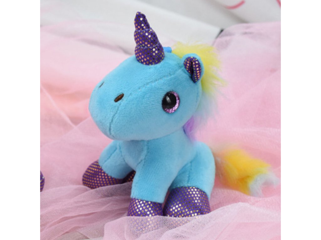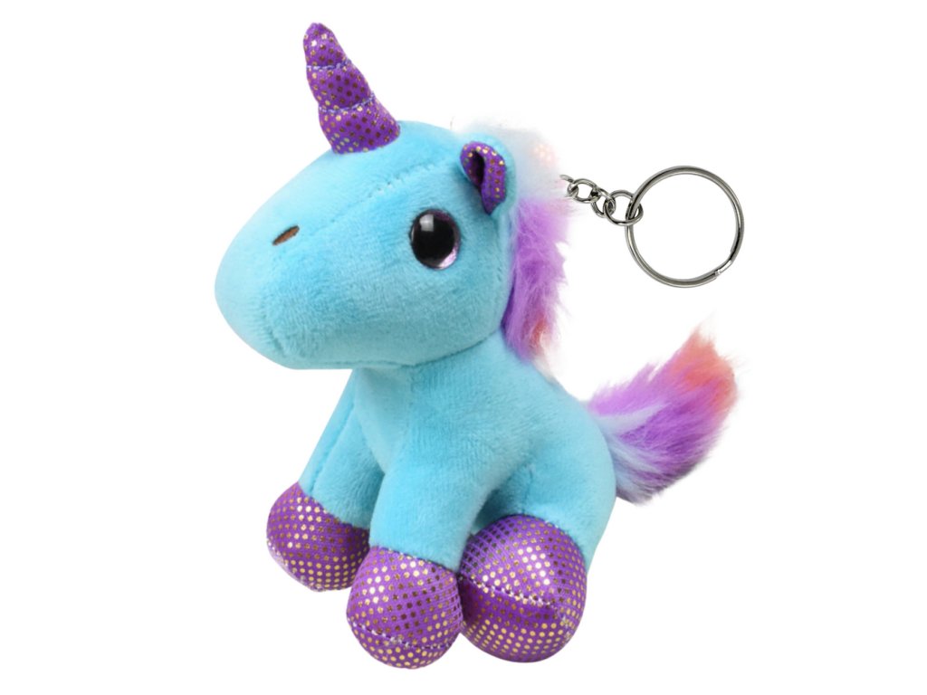 Roztomilý plyšový jednorožec ve formě přívěsku je barevná a měkká maskotka, která je ideálním doplňkem k batohu, tašce, klíčům nebo penálu Vyrobený z příjemného na dotek, světle modrého plyše, upoutá pozornost svým vzhledem