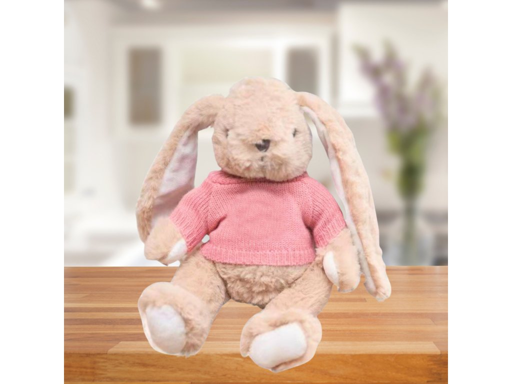- Tento plyšový zajíček v růžovém svetříku je perfektní pro každodenní hry, mazlení i cestování