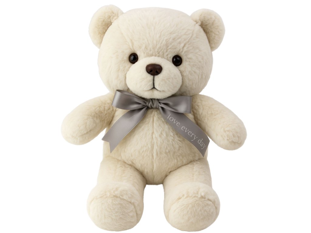Jedinečný plyšový medvídek s mašlí „Happy Every Day“ je ideálním dárkem pro každou příležitost. Osloví svou klasickou bílou barvou a stříbrnou saténovou mašlí, která dodává eleganci. Tento kouzelný medvídek je vyroben z měkkého plyše, což z něj činí báječného společníka pro hravé chvilky i sladký spánek.
