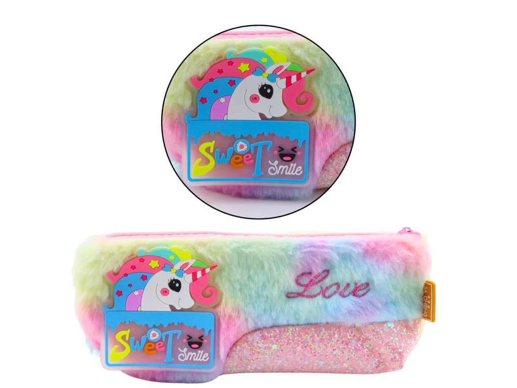 Plyšový penál s jednorožcem je perfektním doplňkem pro školní potřeby.