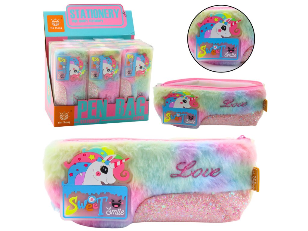 Plyšový Penál s Jednorožcem Barevné Třpytivé Elementy