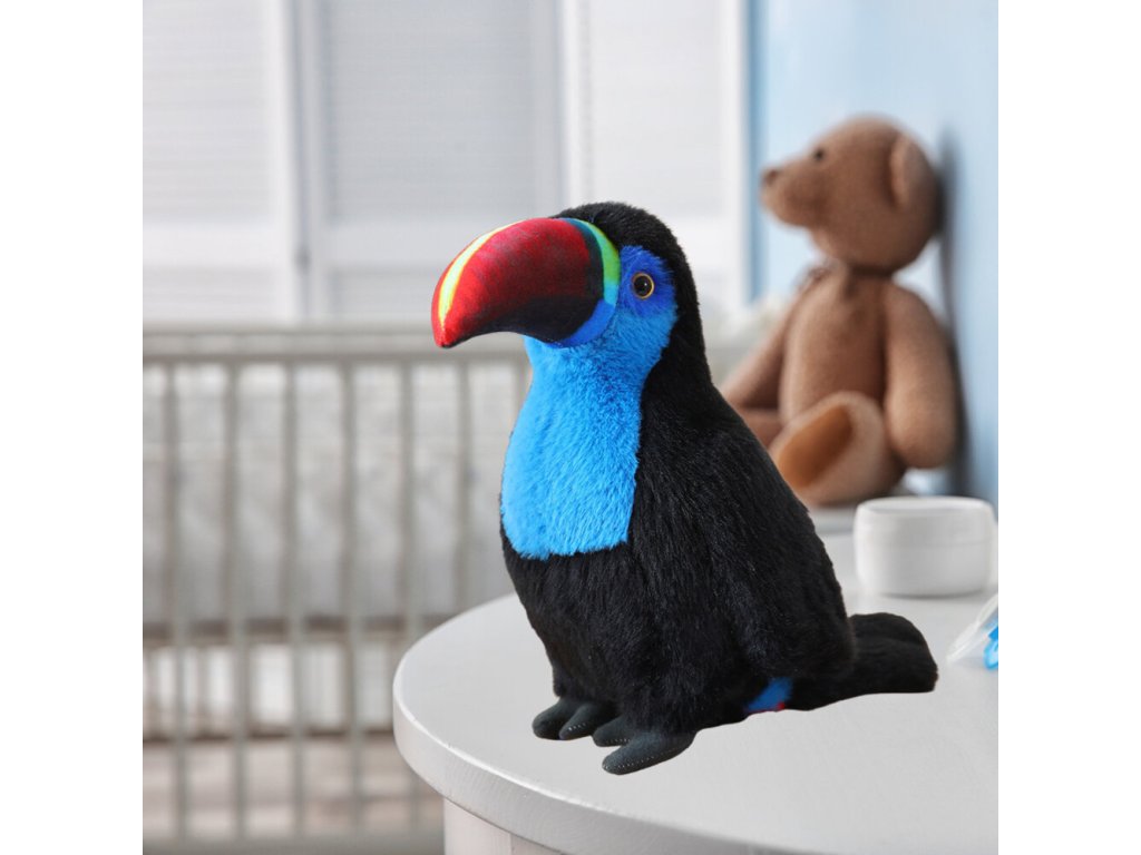 - Tato plyšová hračka tukan o výšce 20 cm věrně zobrazuje charakteristické černé opeření s modrými akcenty