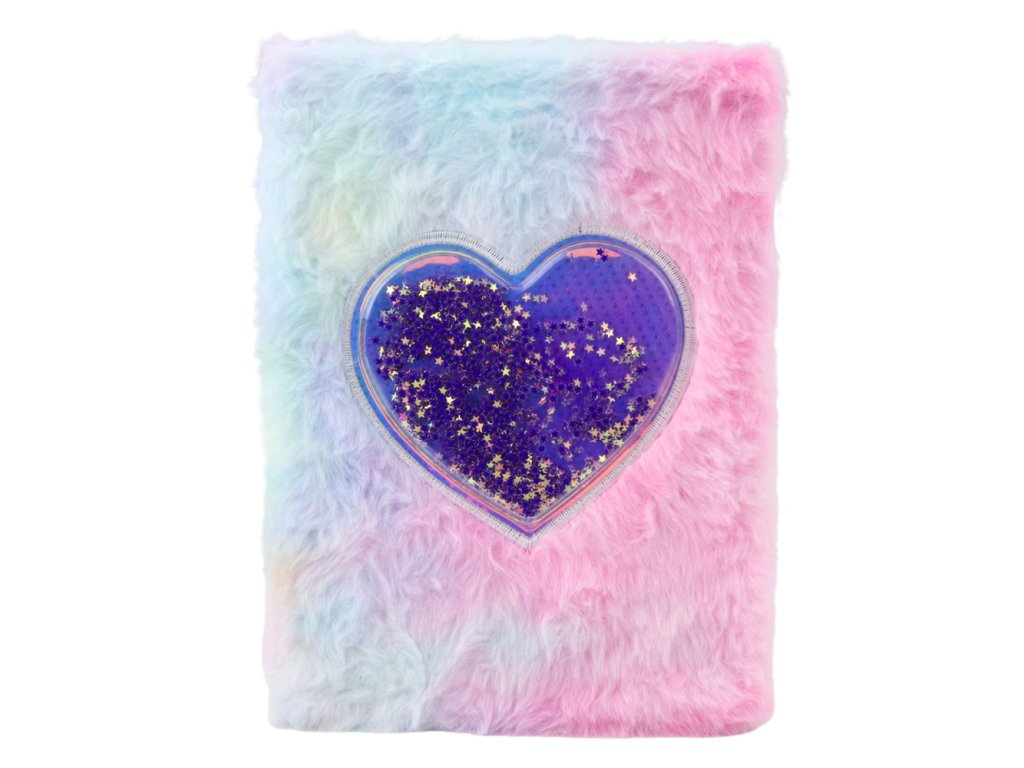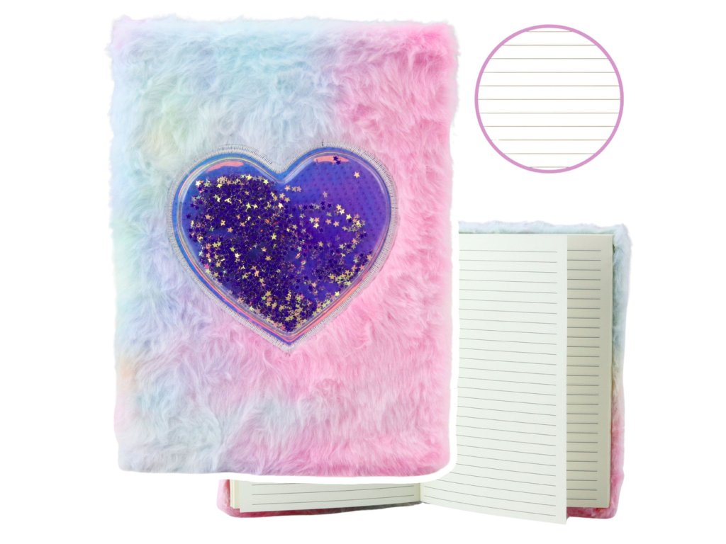 - Plyšový sešit linkovaný srdce s třpytivými konfetami je nejen praktický, ale především stylový