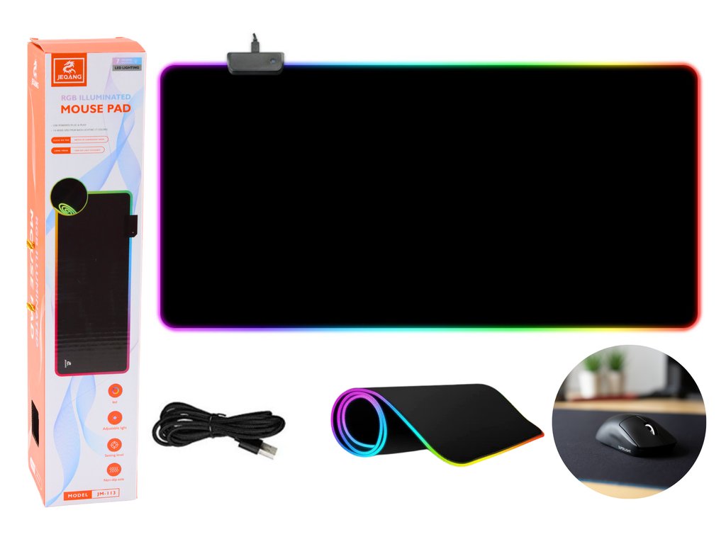 RGB LED podsvícená herní podložka pod myš a klávesnici 30x80cm je nezbytným prvkem pro každého hráče, který si chce vytvořit unikátní herní prostředí Díky rozměrům 80 x 30 cm podložka poskytuje dostatečnou plochu pro pohodlné používání