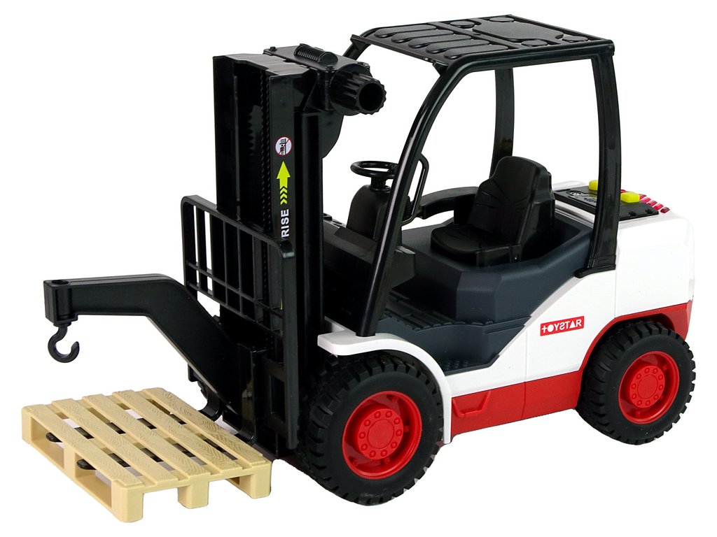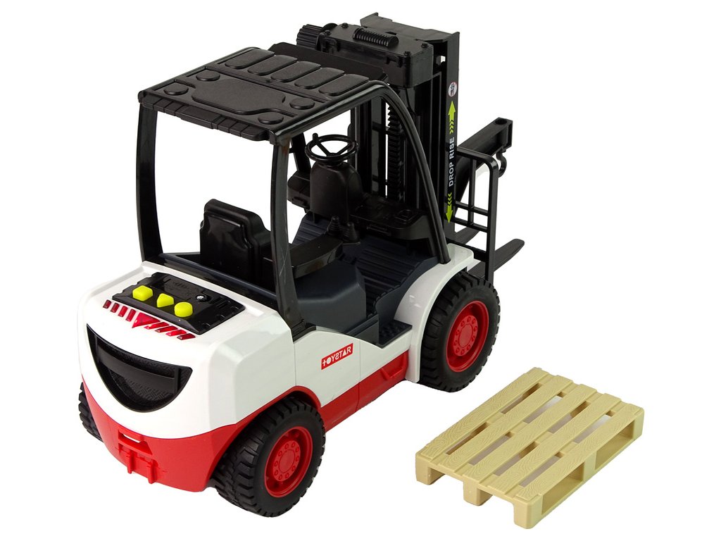 Vysokozdvižný vozík s pohyblivými vidlemi a paletou Hračka pro každého chlapce, který miluje hraní si s velkými auty
